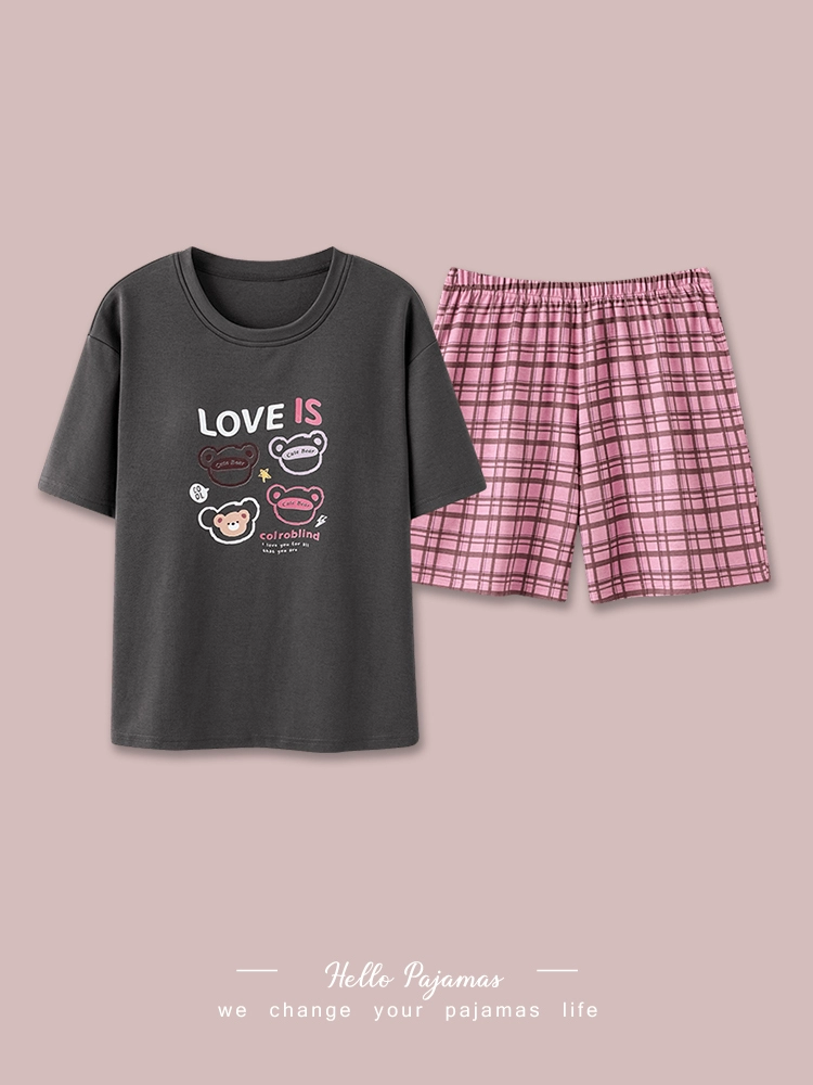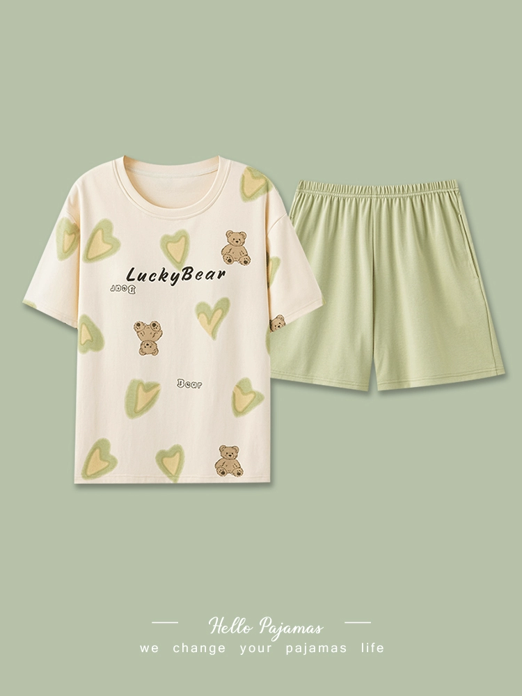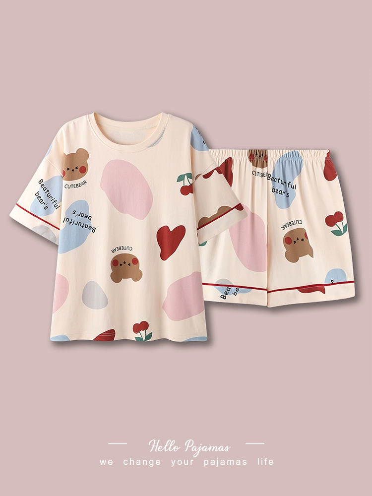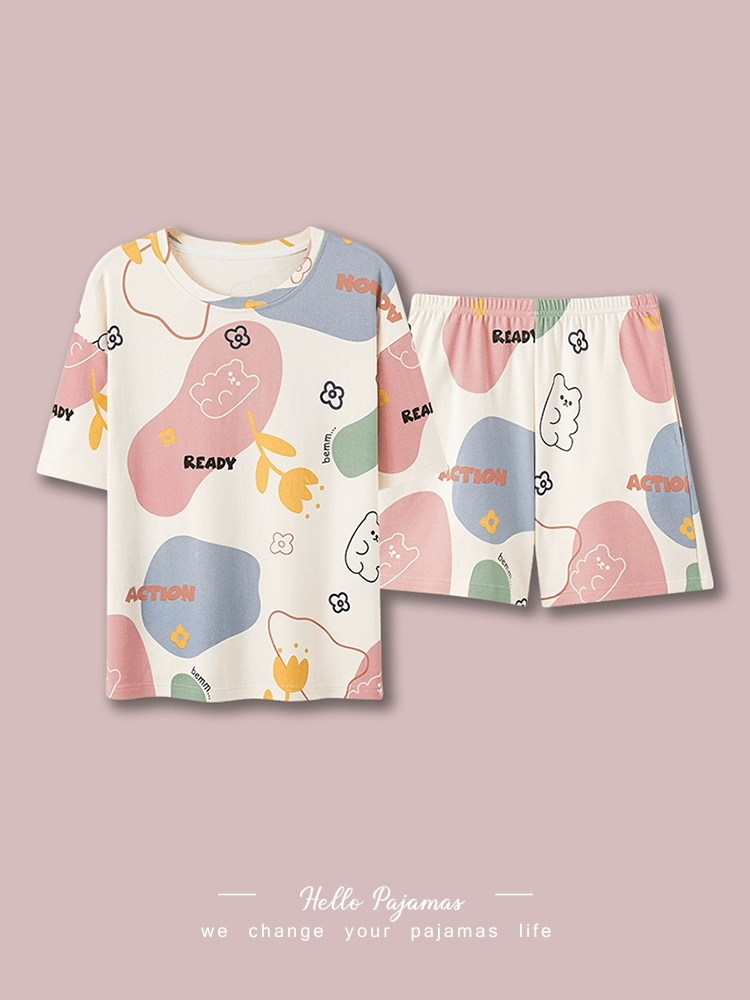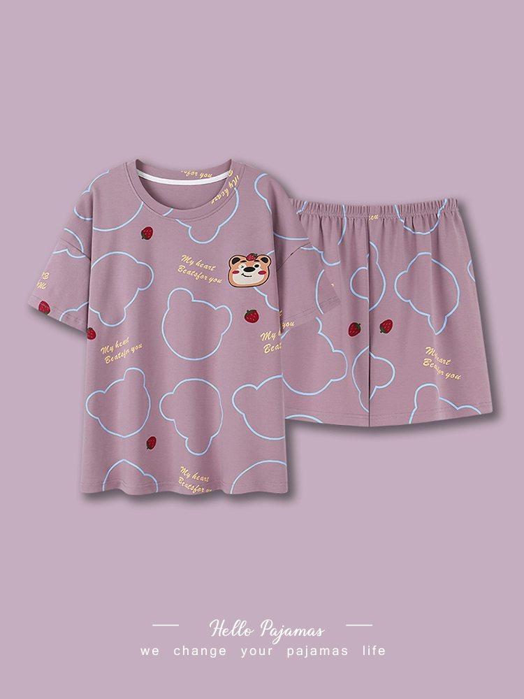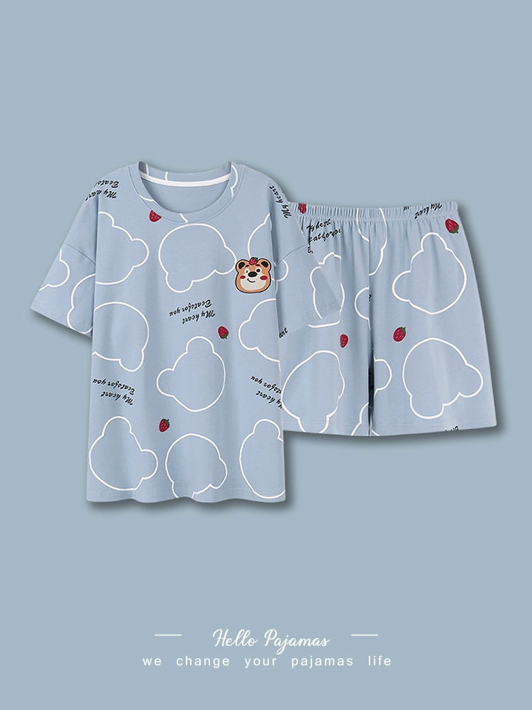 | nameOriginal | Langsha women's short-sleeved shorts summer cotton cartoon pajamas |