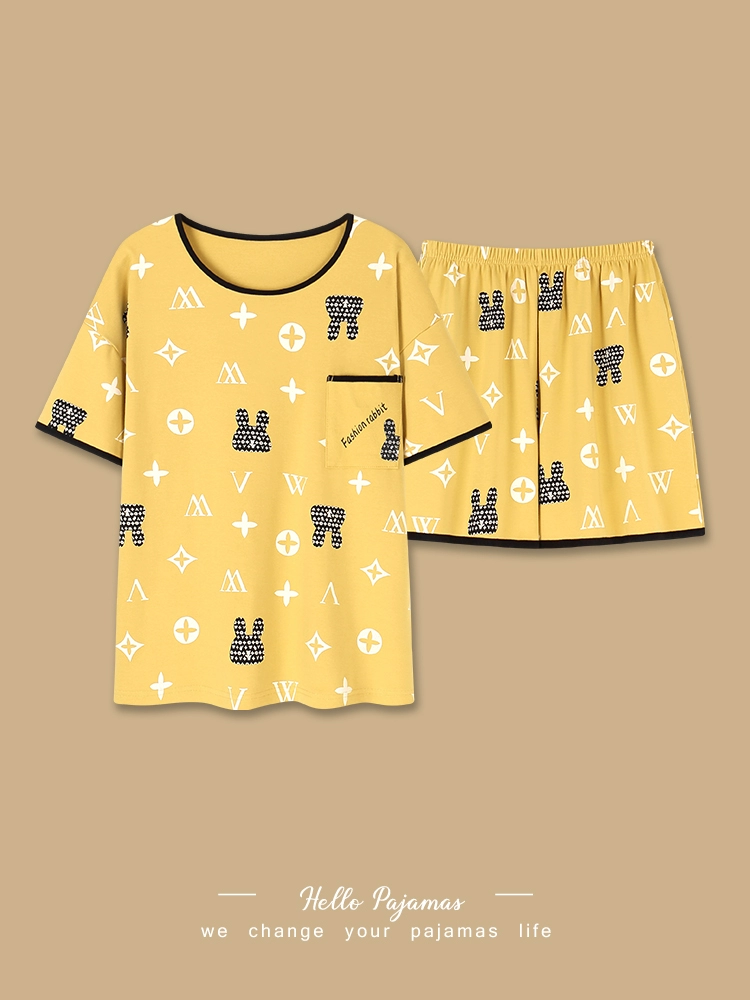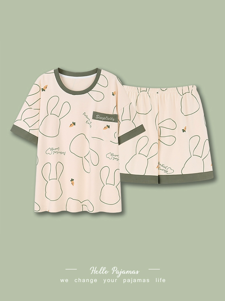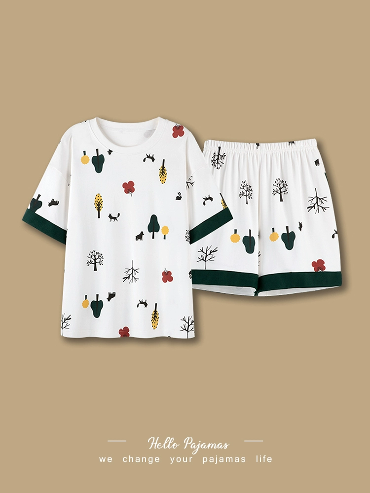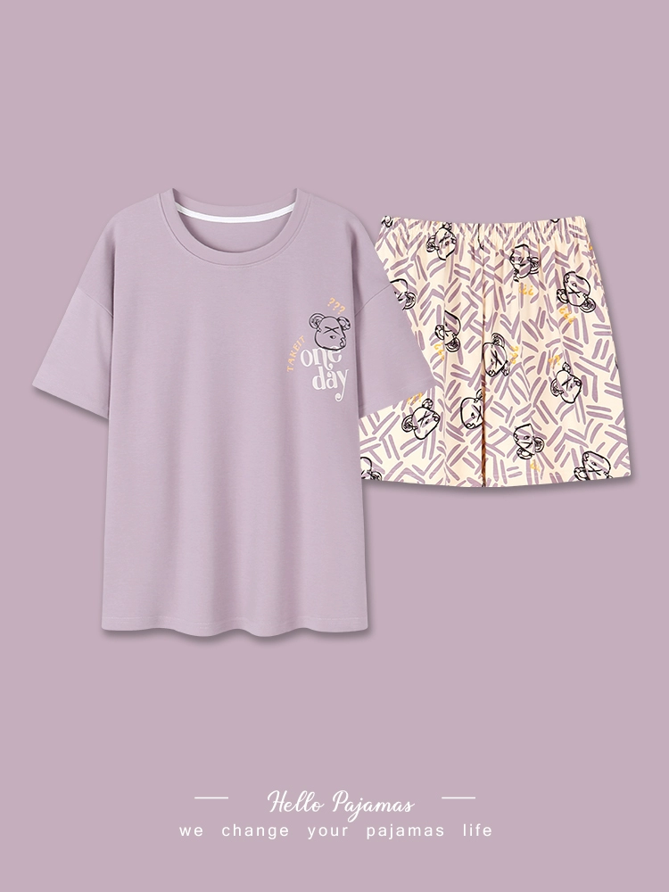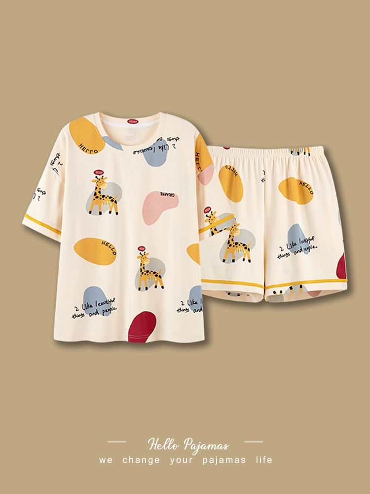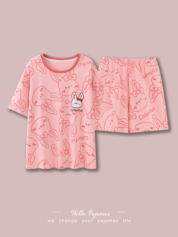 | nameOriginal | Langsha women's short-sleeved shorts summer cotton cartoon pajamas |