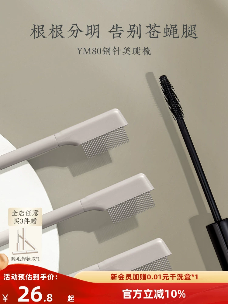 Langyan steel needle eyelash comb stainless steel ultra-fine eyebrow trimming comb real and false eyelashes to remove fly legs and curl makeup brush