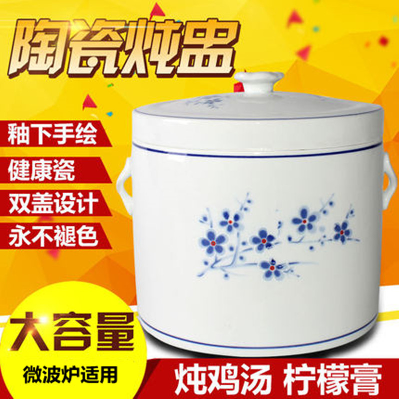 | nameOriginal | Lanmei blue and white water-proof ceramic stew pot with lid double-ear Buddha jump wall Bird's Nest household large stew pot steamed egg bowl pot |