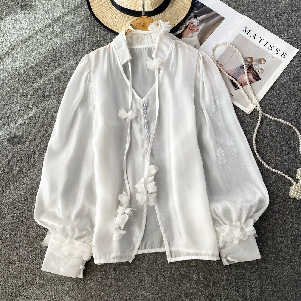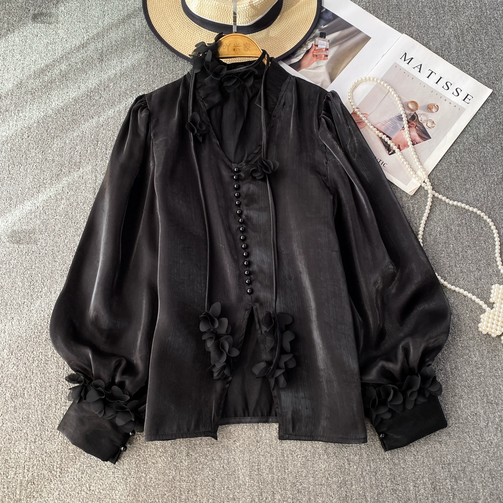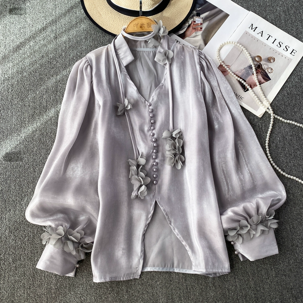 | nameOriginal | Lantern long sleeve V-neck glossy casual top pullover |