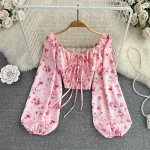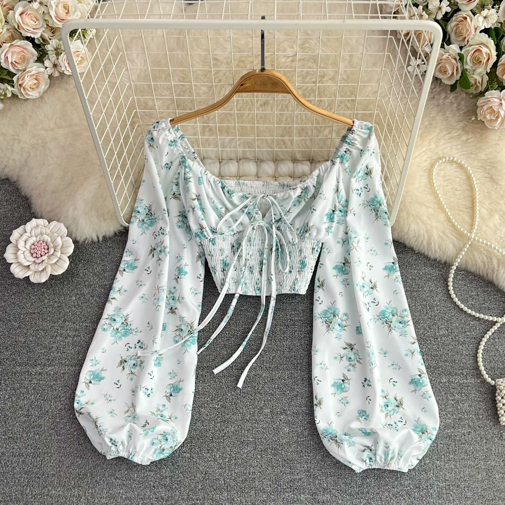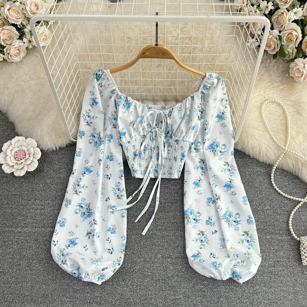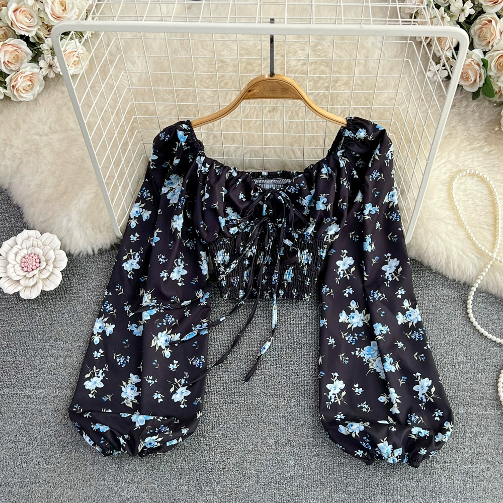 | nameOriginal | Lantern long-sleeved smocked lace-up chic navel-baring shirt |