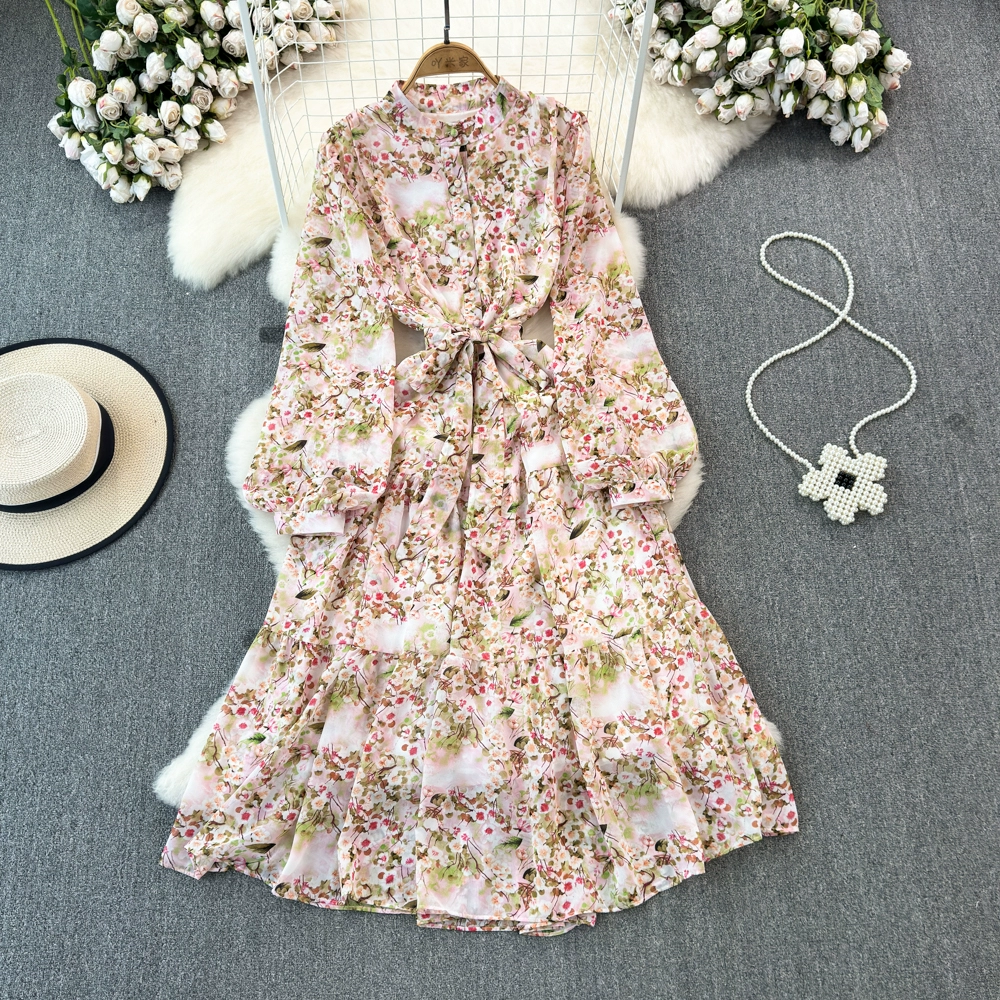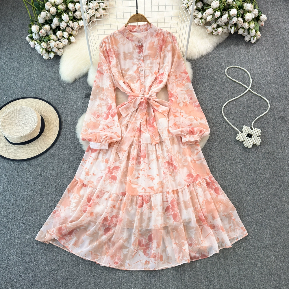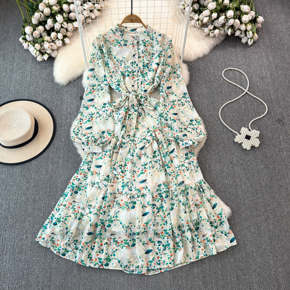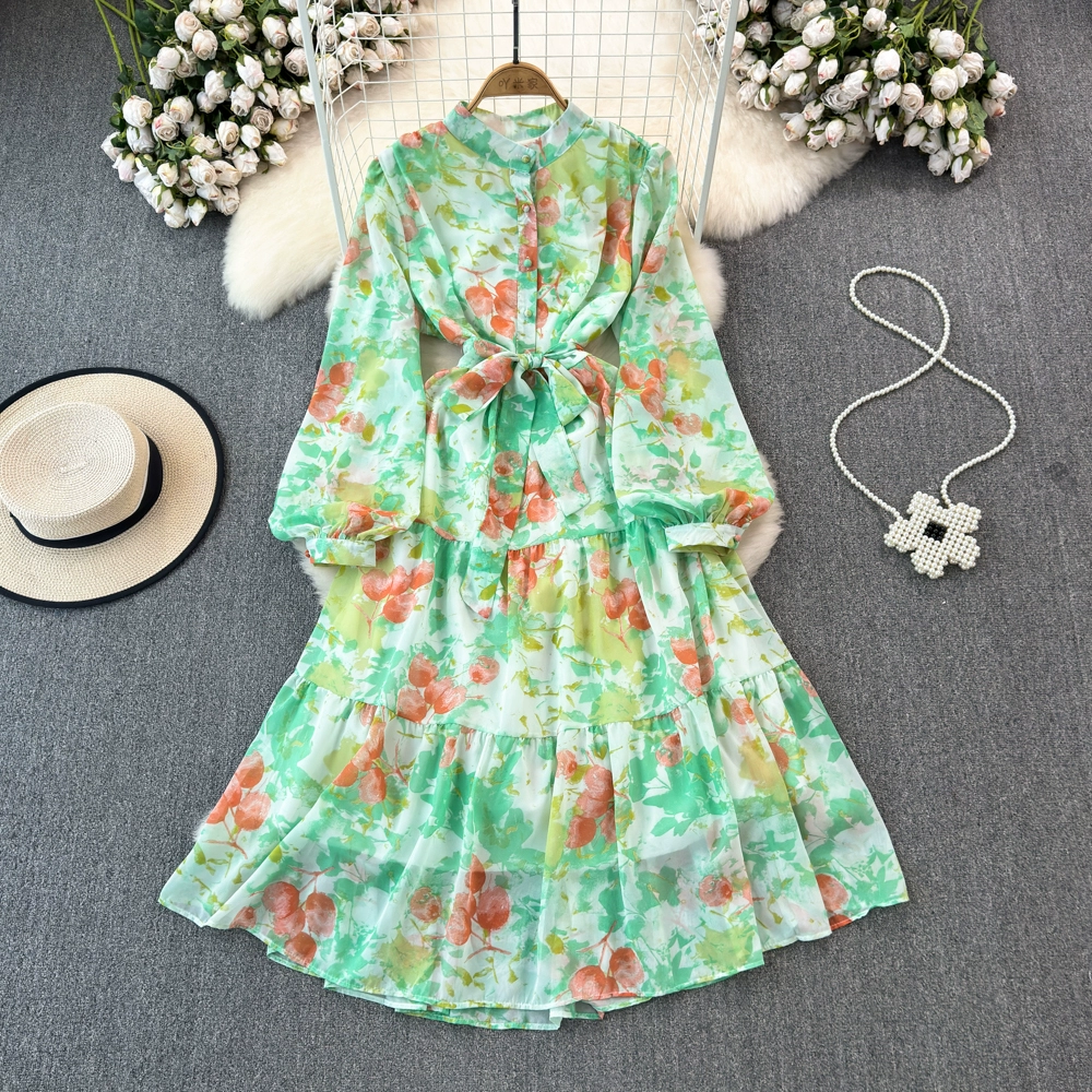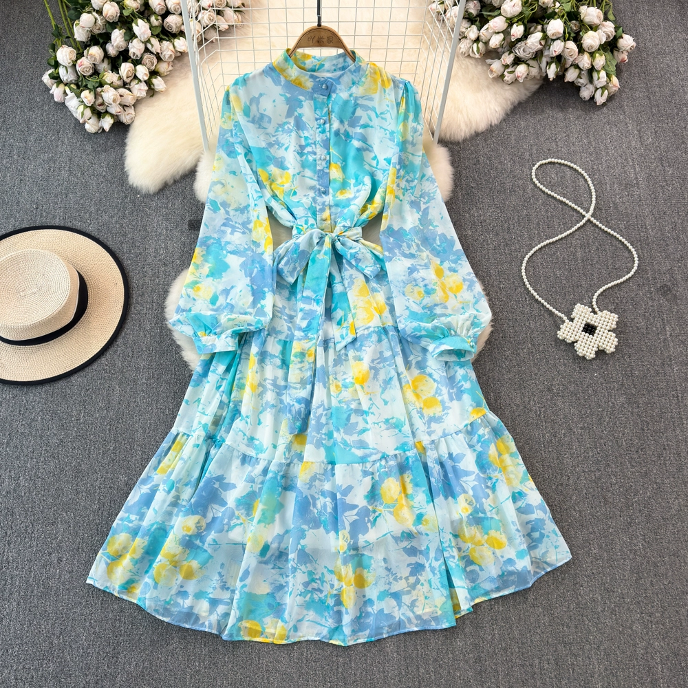 | nameOriginal | Lantern long-sleeved stand-collar A-line elegant dress with wide hem |