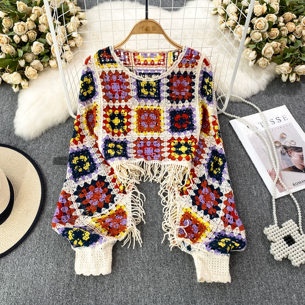 | nameOriginal | Lantern round neck contrast tassel seaside resort sweater |