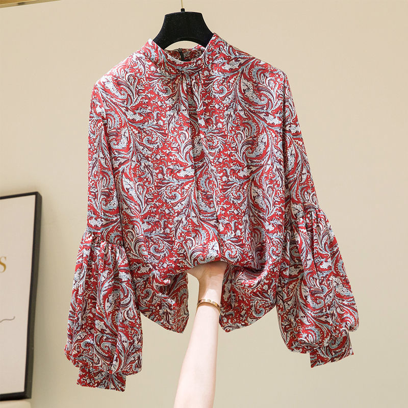 | nameOriginal | Lantern Sleeve Chiffon Shirt Women's Long Sleeve 2024 Spring New Retro Floral Design Sense Niche Shirt Collar Top |