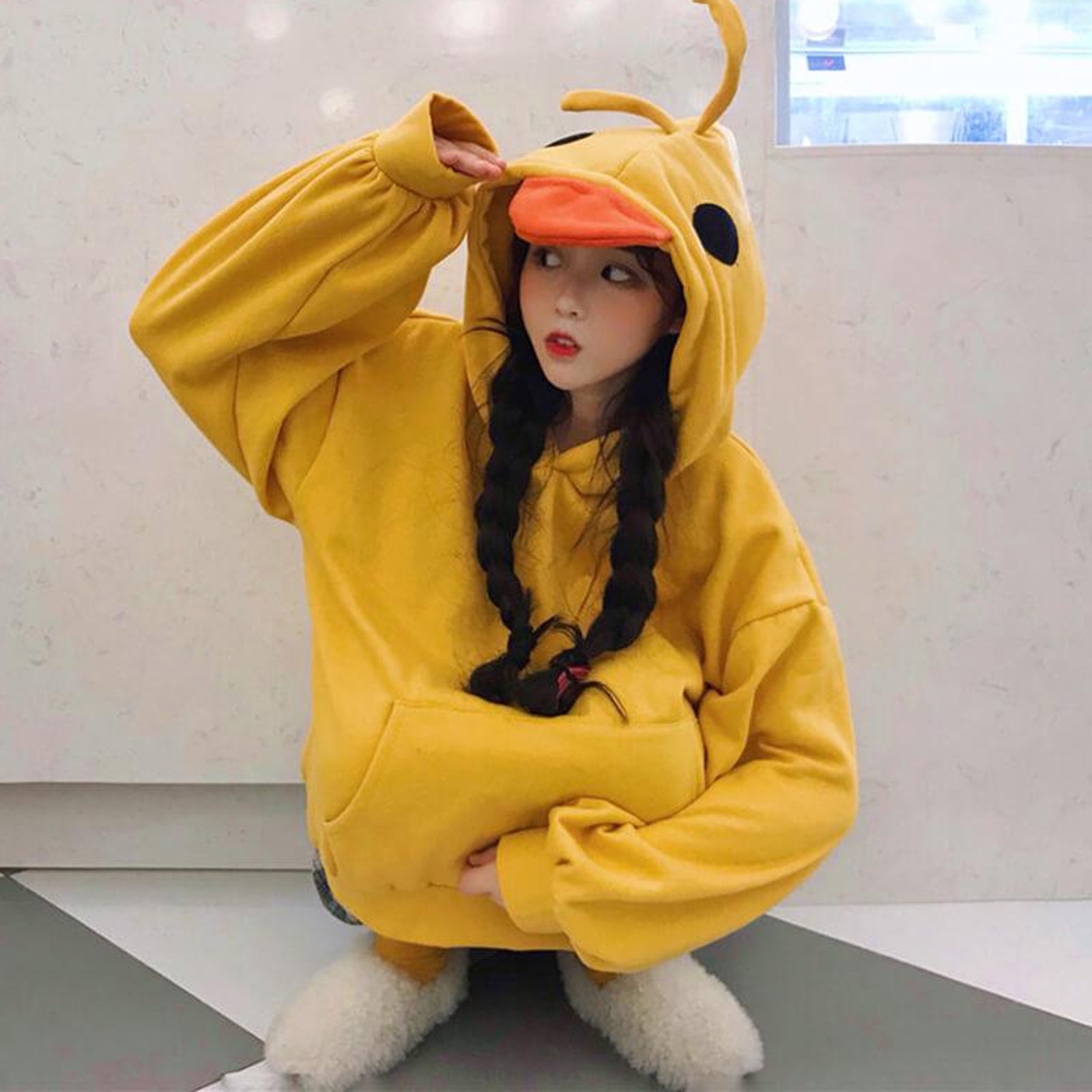 | nameOriginal | Lantern Sleeve Fleece-Lined Duck-Shaped Pullover Hoodie |