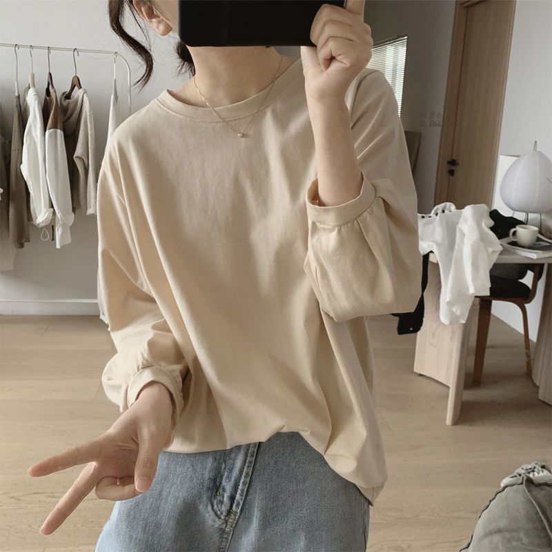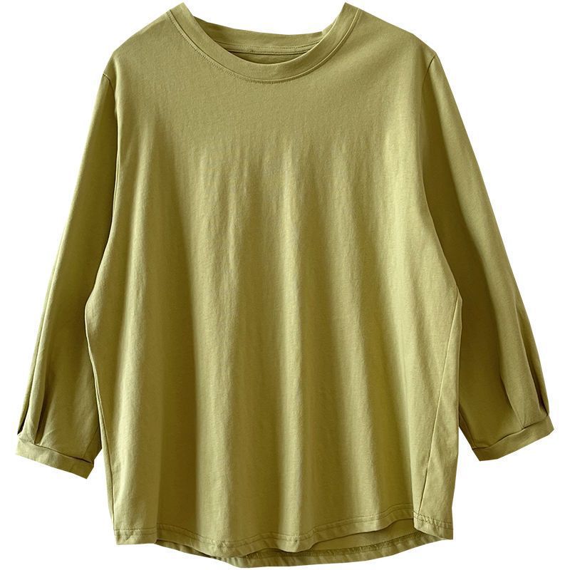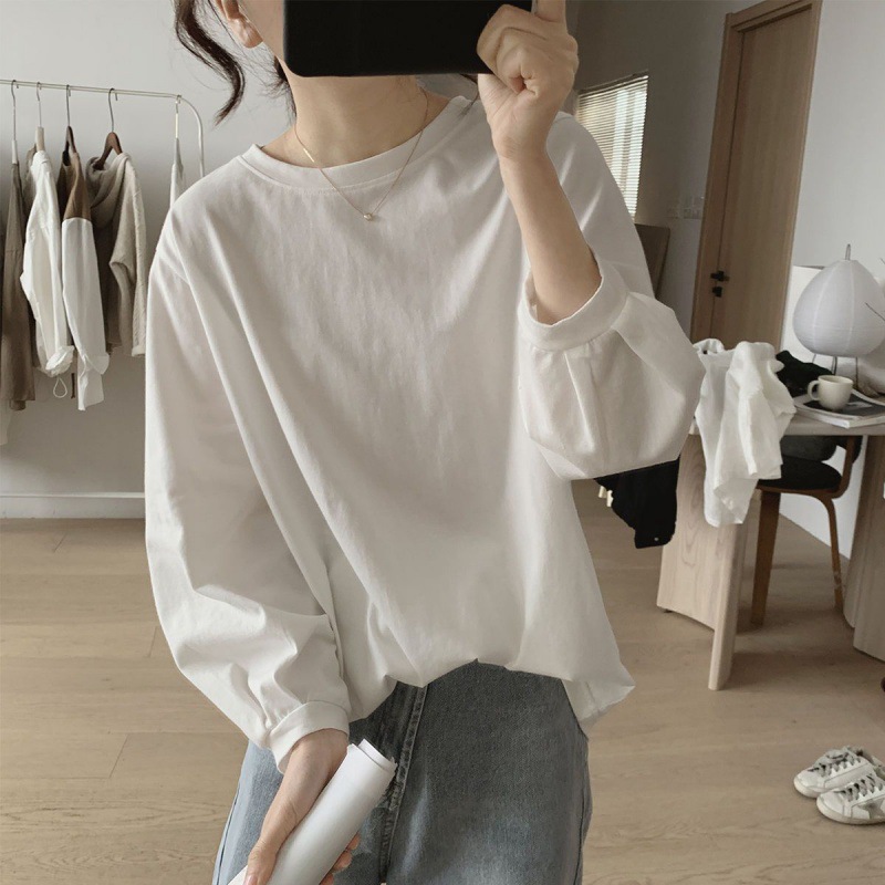 Lantern Sleeve T-shirt Women’s Autumn New Loose Slimming Simple Pleated Nine-point Sleeve Top