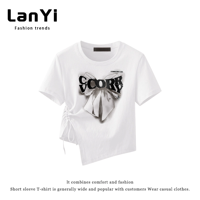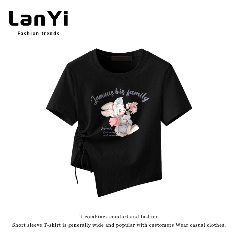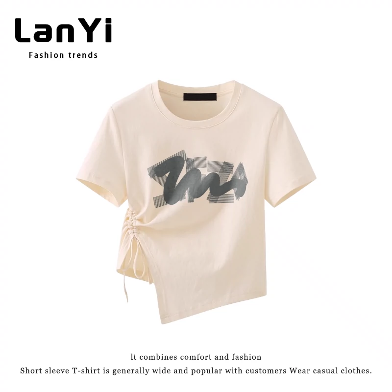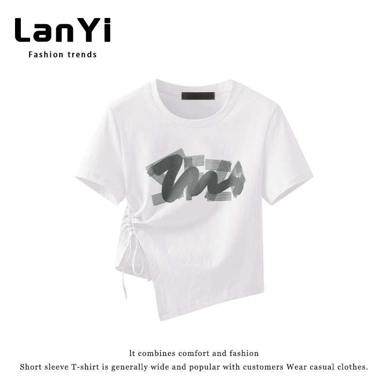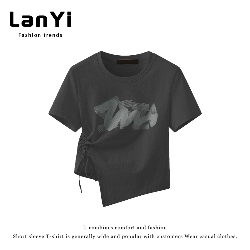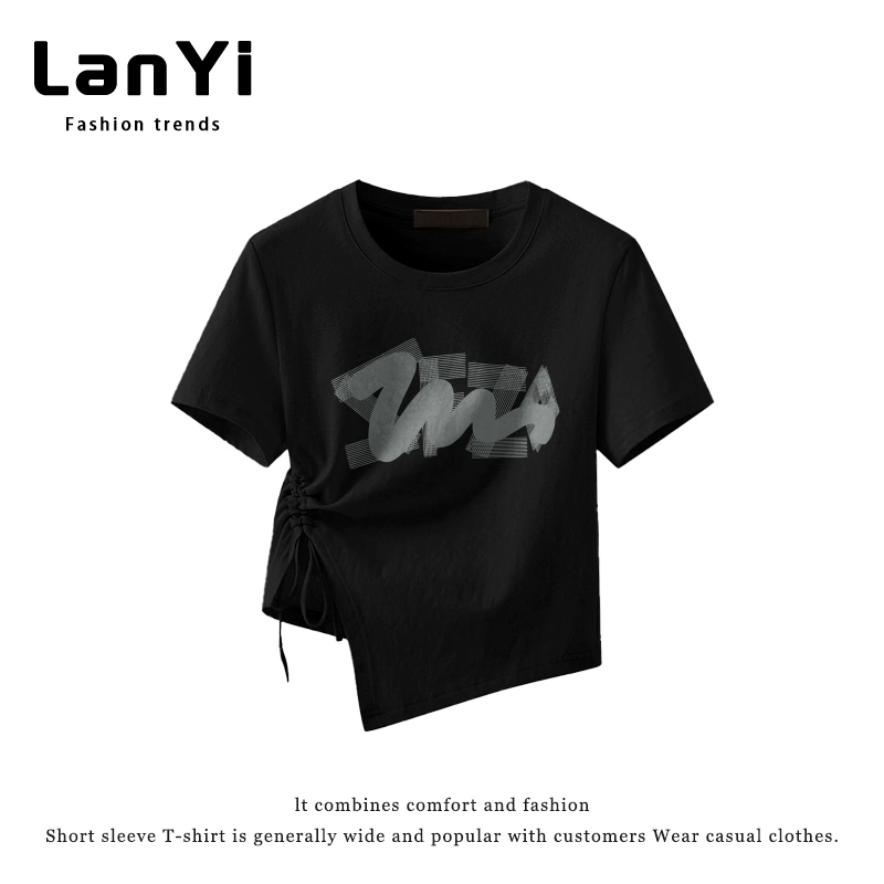 | nameOriginal | Lanyi trendy brand slim-fitting short-sleeved T-shirt for small women with irregular design, right-shoulder slim top, short style |