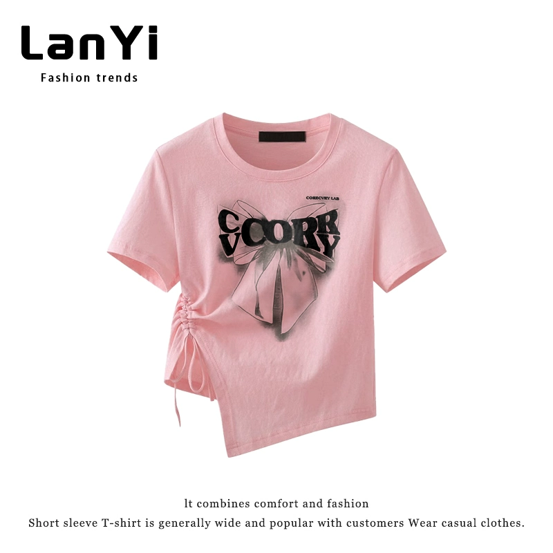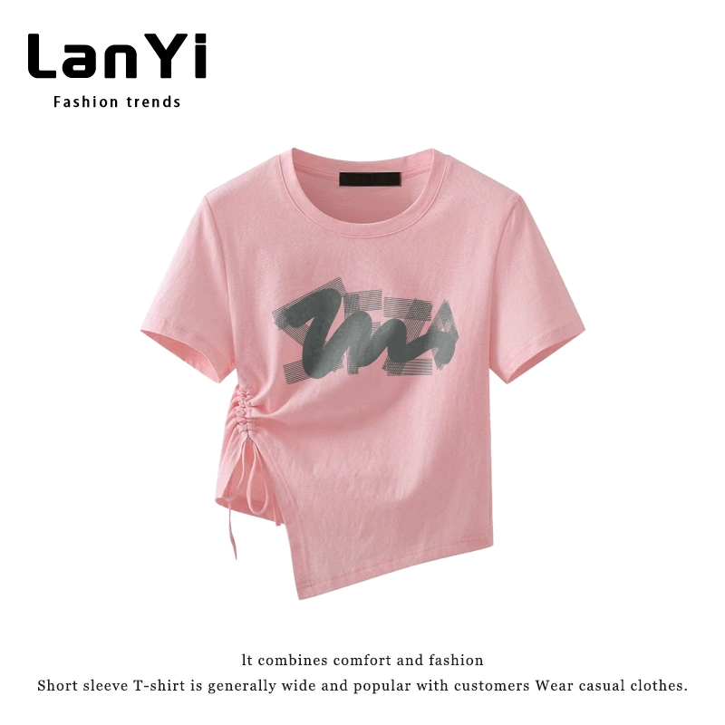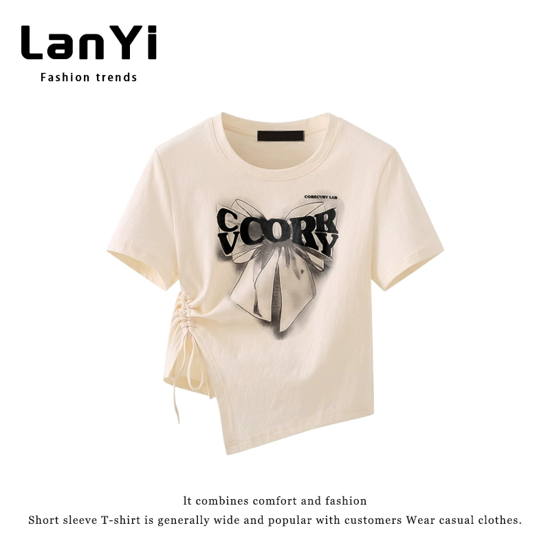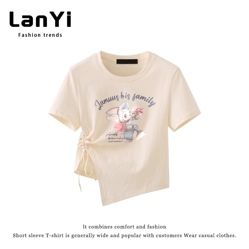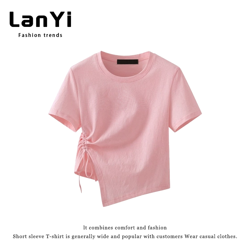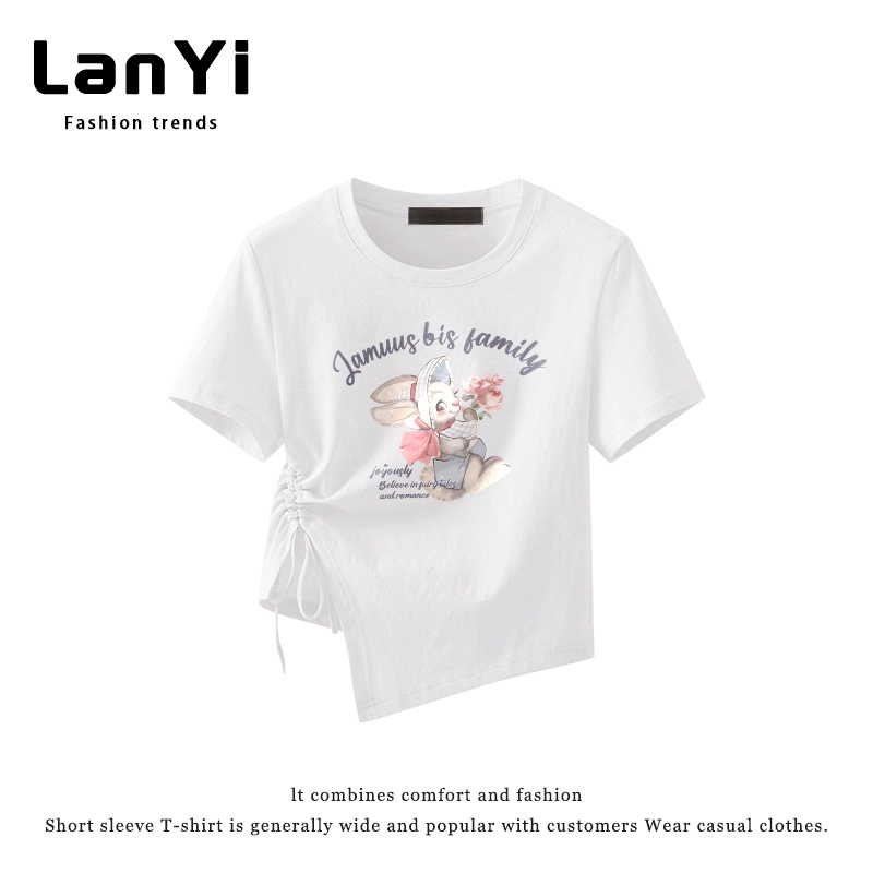 | nameOriginal | Lanyi trendy brand slim-fitting short-sleeved T-shirt for small women with irregular design, right-shoulder slim top, short style |