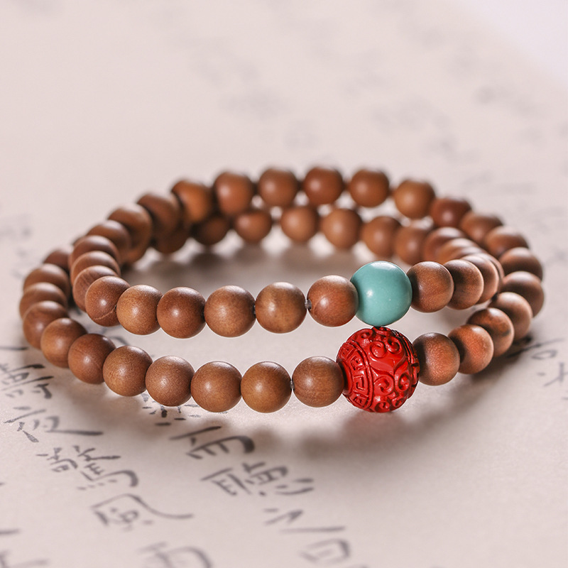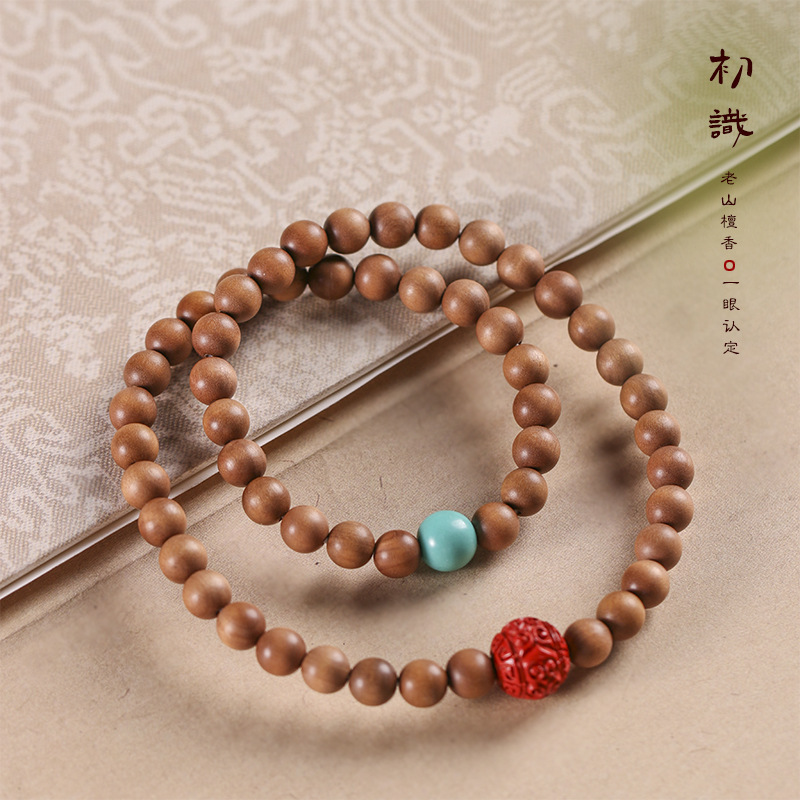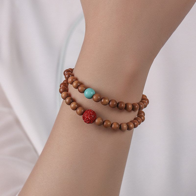 Laoshan sandalwood DIY feel woven turquoise multi-Circle Bracelet sandalwood Wenwan rosary couple bracelet
