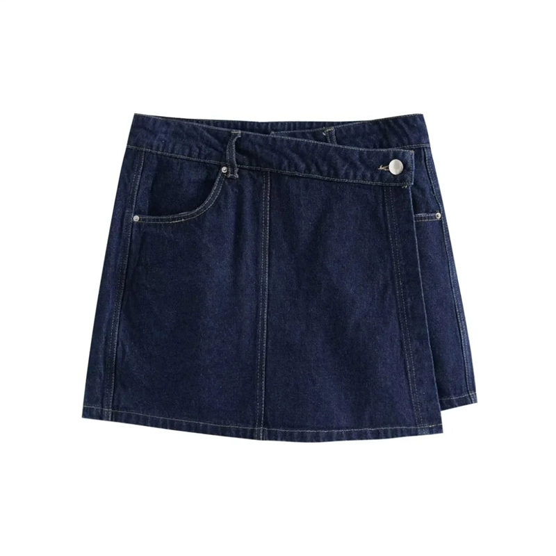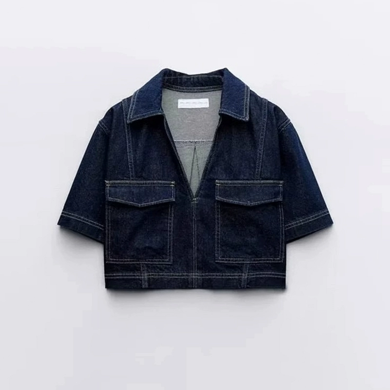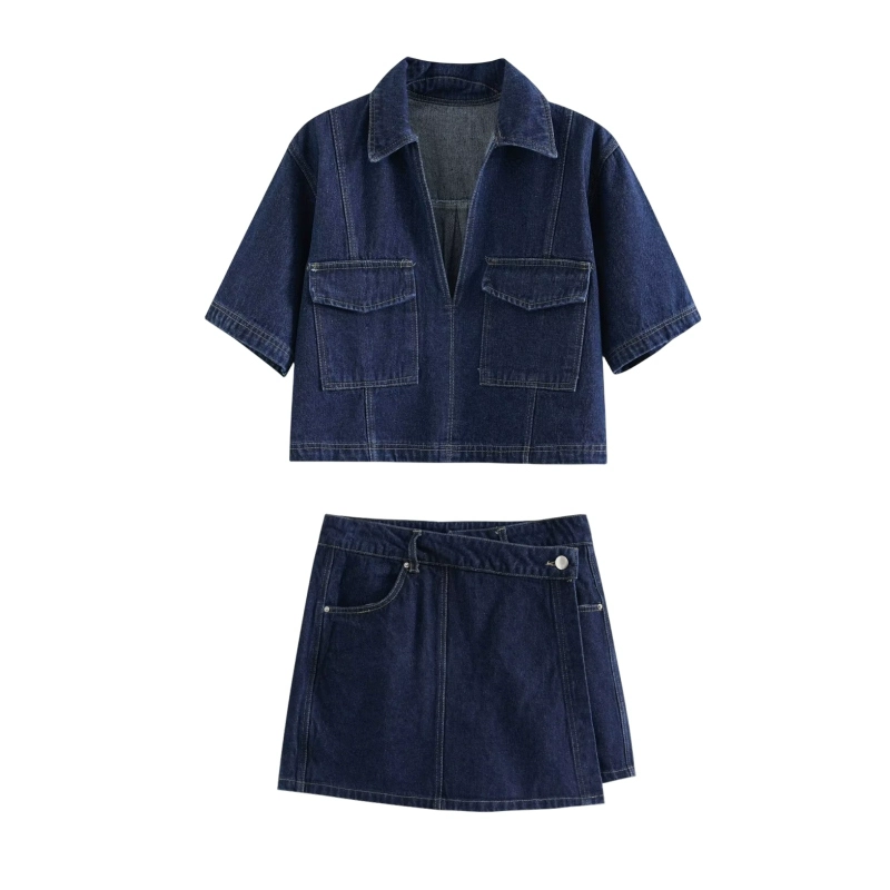 | nameOriginal | Lapel denim shirt double-breasted short sleeve skirt |