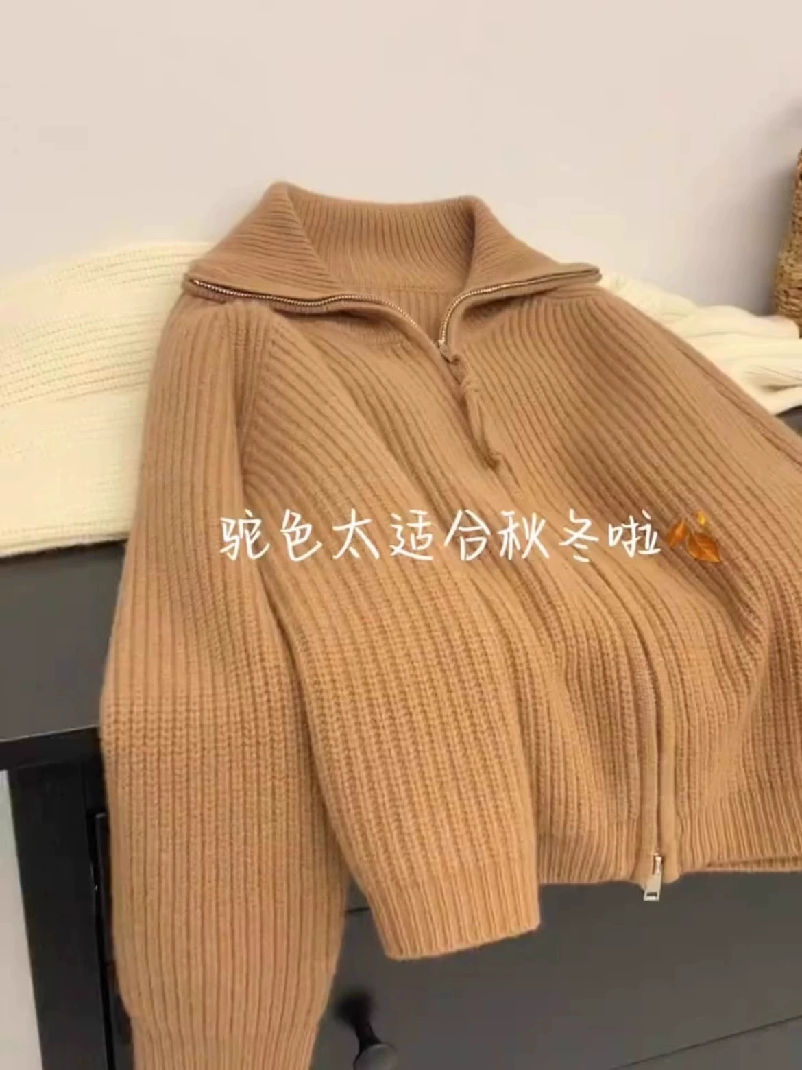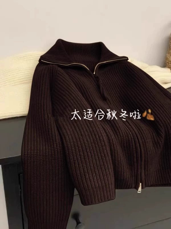 | nameOriginal | Lapel double zipper early autumn soft waxy cardigan sweater |