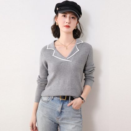 Lapel long sleeve bottoming sweater women’s short loose POLO collar sweater top Western style Korean style sweater