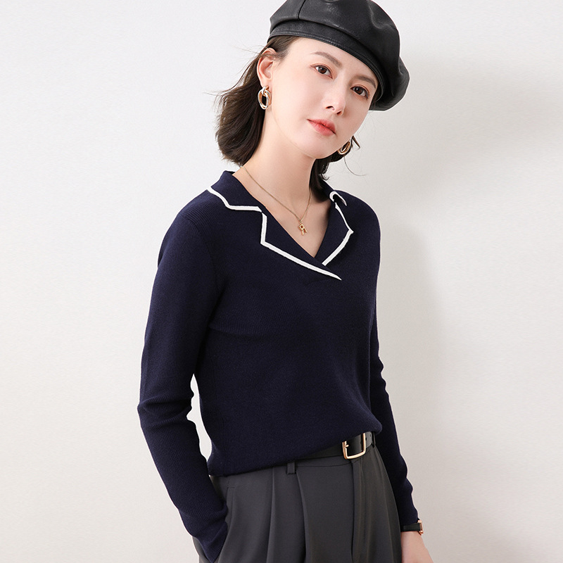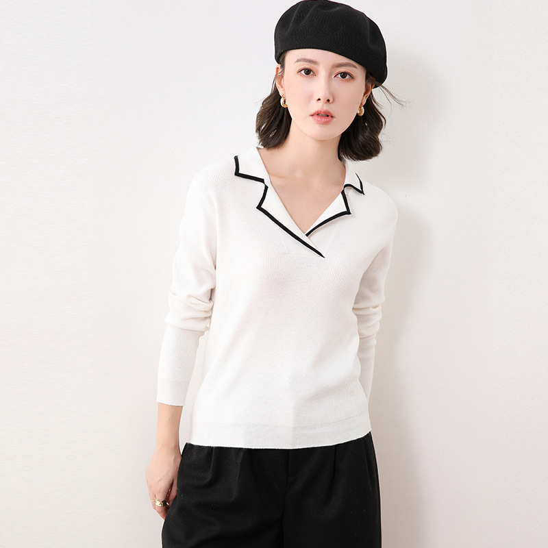 Lapel long sleeve bottoming sweater women's short loose POLO collar sweater top Western style Korean style sweater