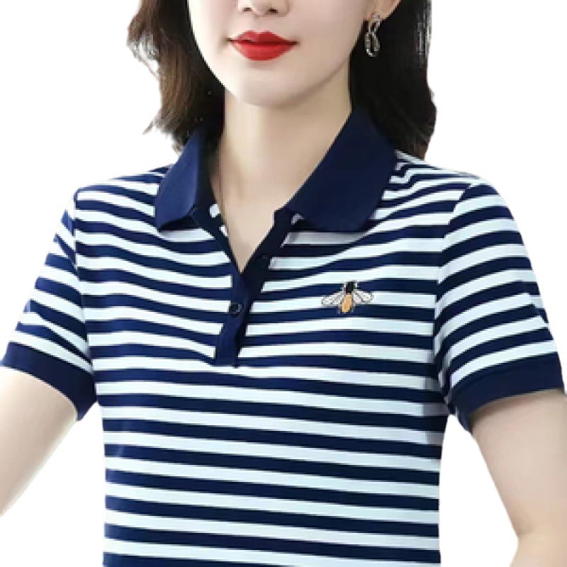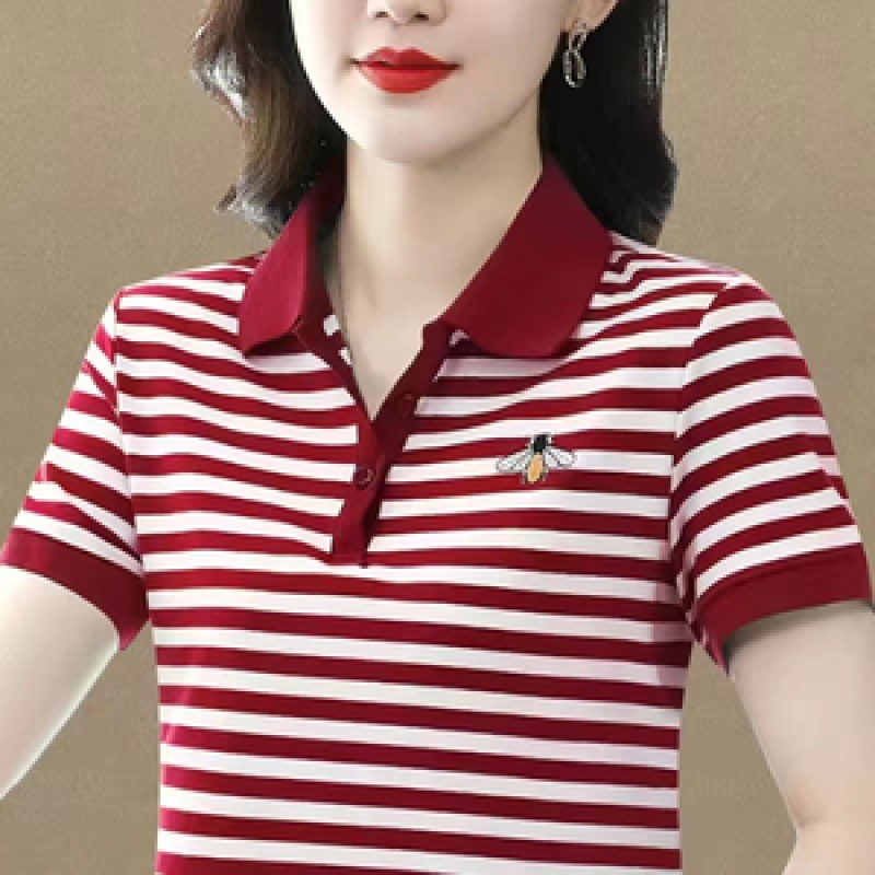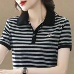 | nameOriginal | Lapel Short-sleeved T-shirt Women's Summer 2024 New Polo Shirt Fashionable All-match Striped Casual Top Trendy for Moms |