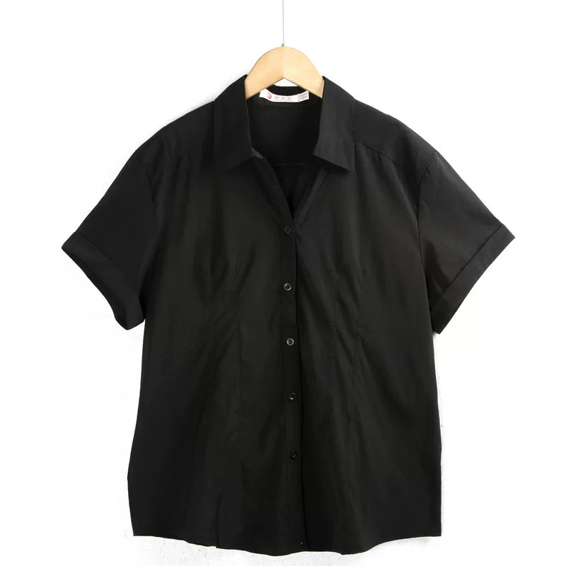 | nameOriginal | Lapel single-breasted black and white elegant simple short-sleeved shirt |