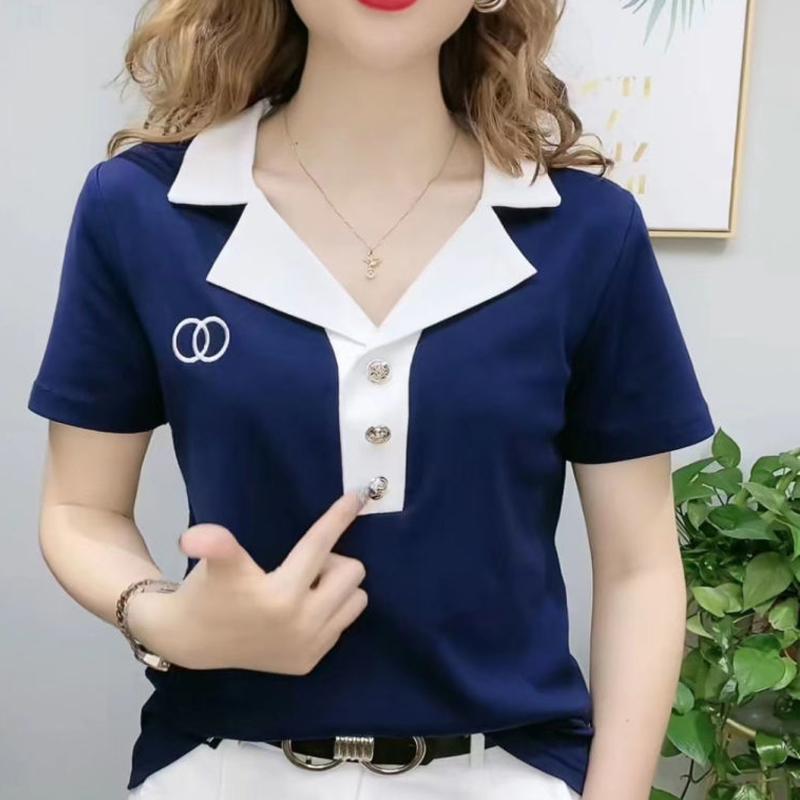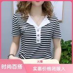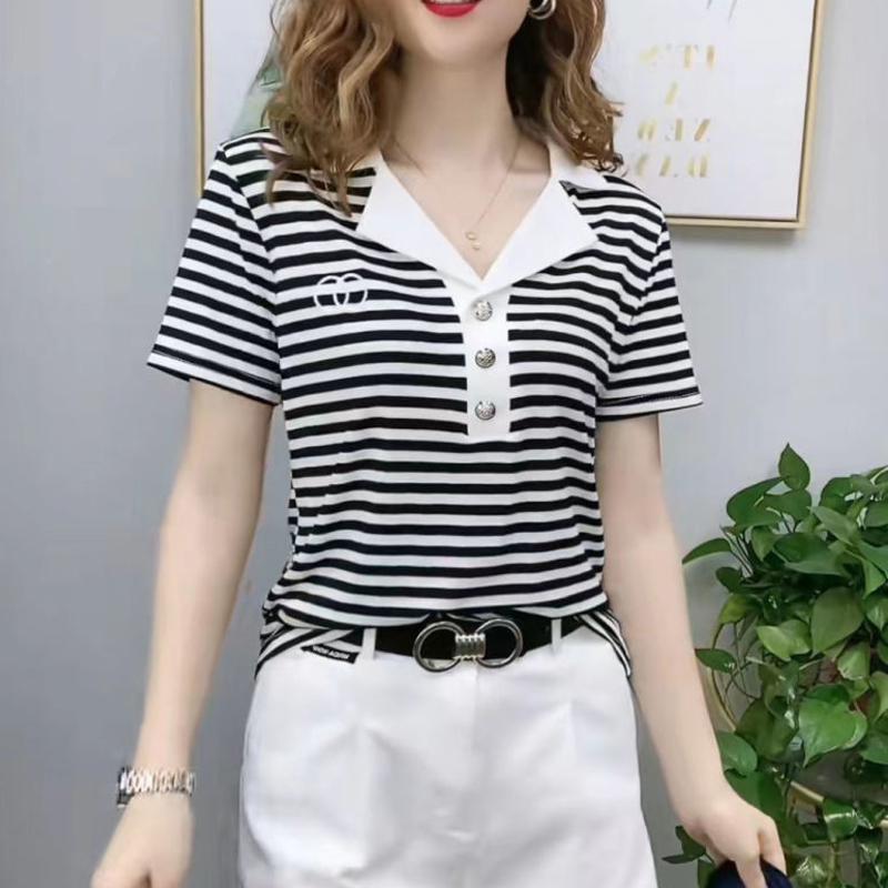 | nameOriginal | Lapel Striped Short-sleeved T-shirt Women's Summer Loose plus size Middle-aged Mother's Fashionable All-match Top Polo Shirt |