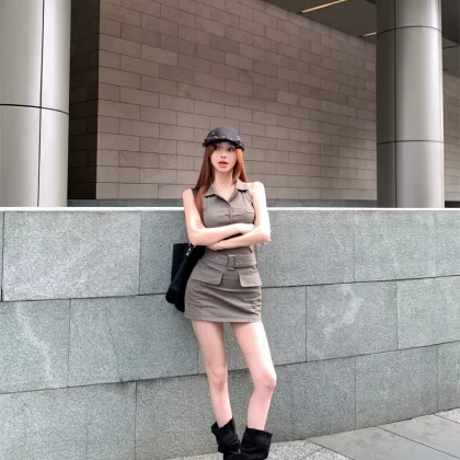 | nameOriginal | Lapel summer slim fit hip-hugging sleeveless dress |