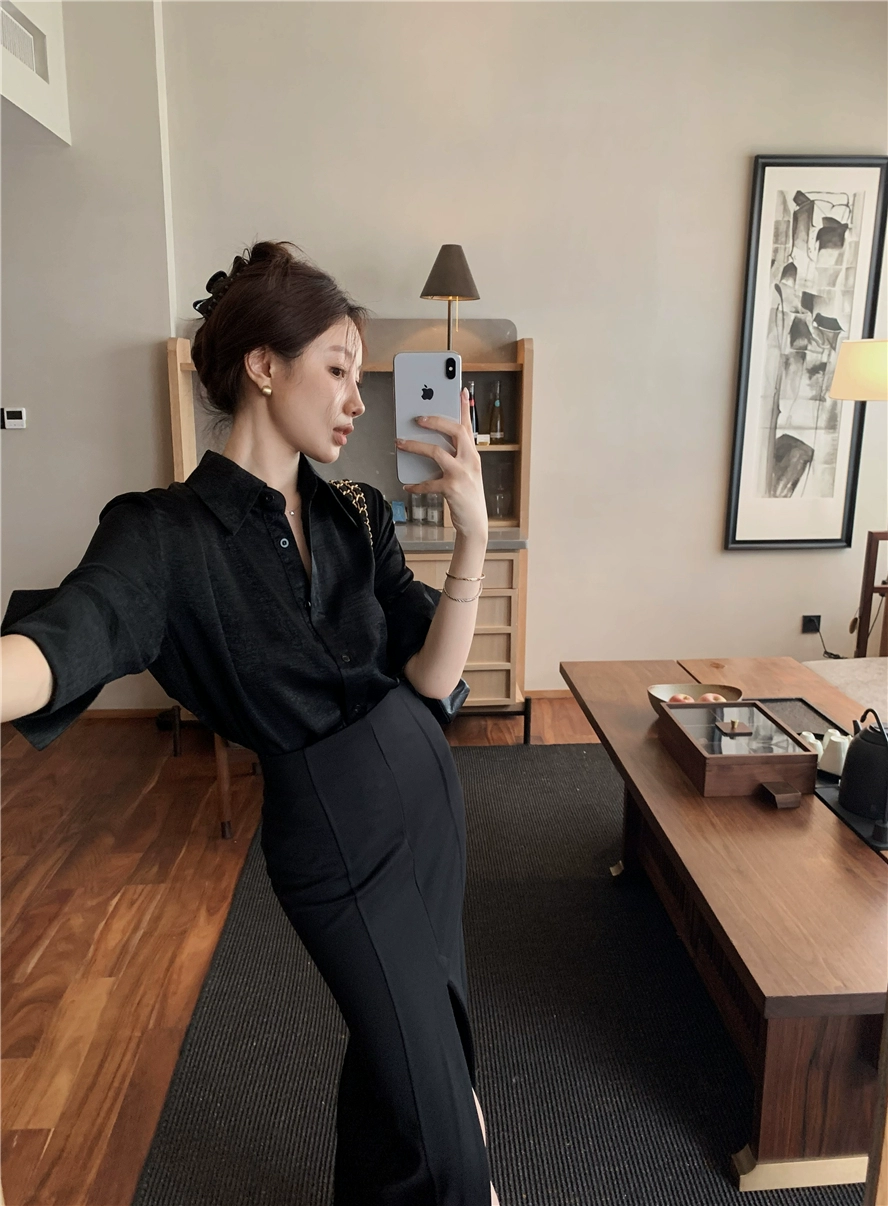 | nameOriginal | Lapel sun protection Hong Kong style retro slit hip wrap satin |
