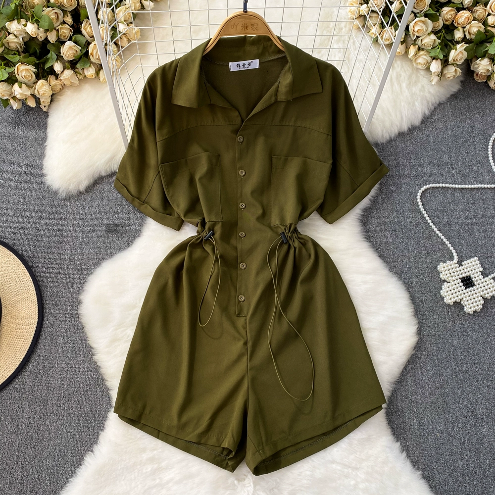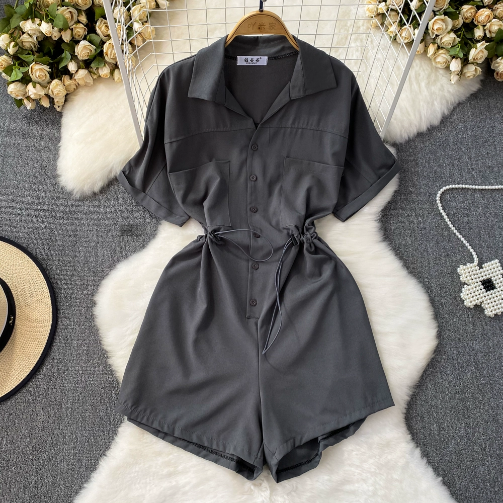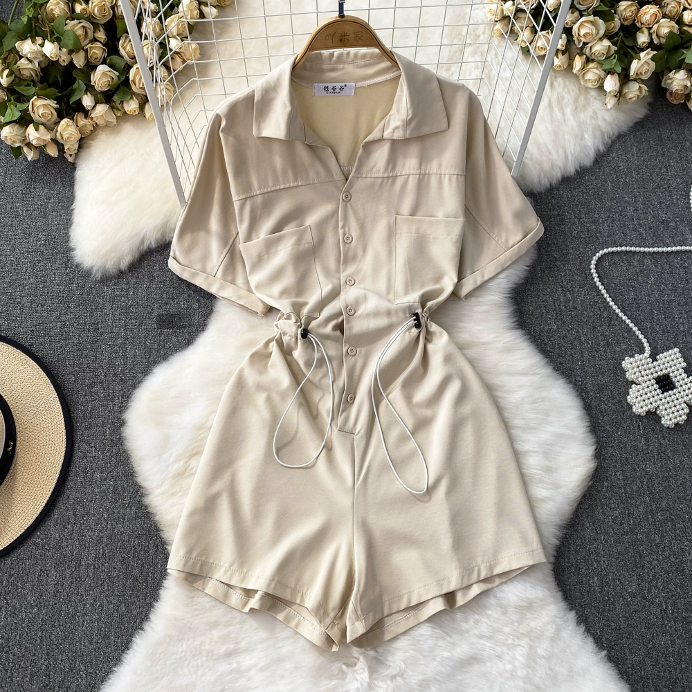 | nameOriginal | Lapel waist slimming drawstring a line skirt short sleeves |