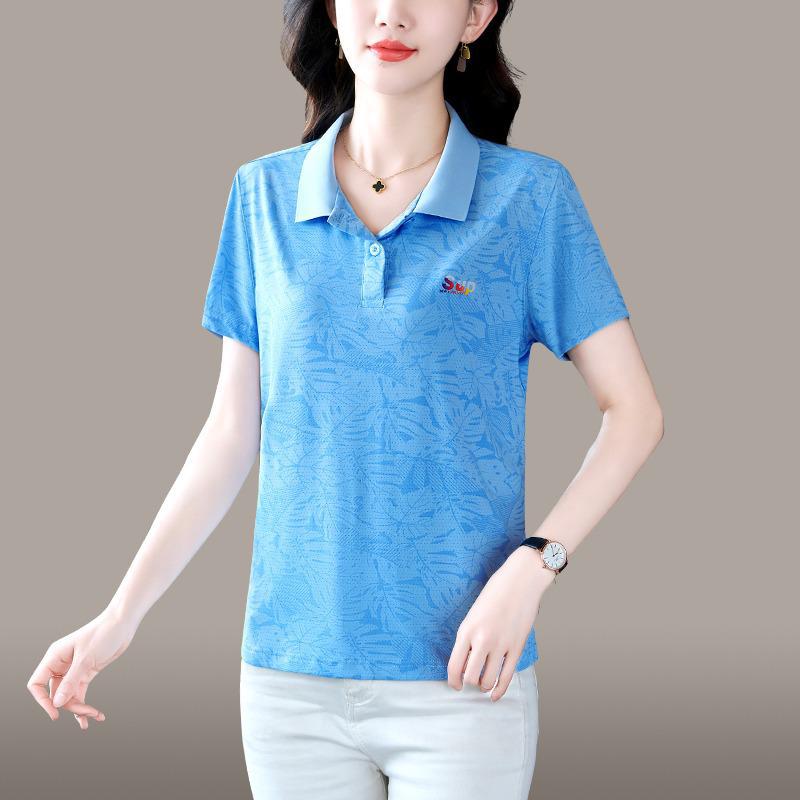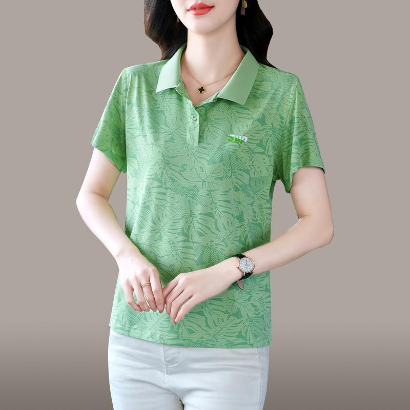 | nameOriginal | Lapp Collar Short-sleeved T-shirt Women's Summer Thin Fashionable Mom Ice Silk Quick-drying Printed Top Middle-aged Women's Polo Shirt |