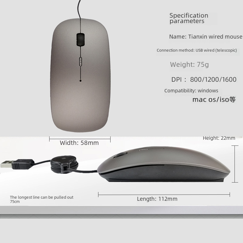 | nameOriginal | Laptop retractable wired mouse mute USB photoelectric mouse office games can receive a single cartoon gift |