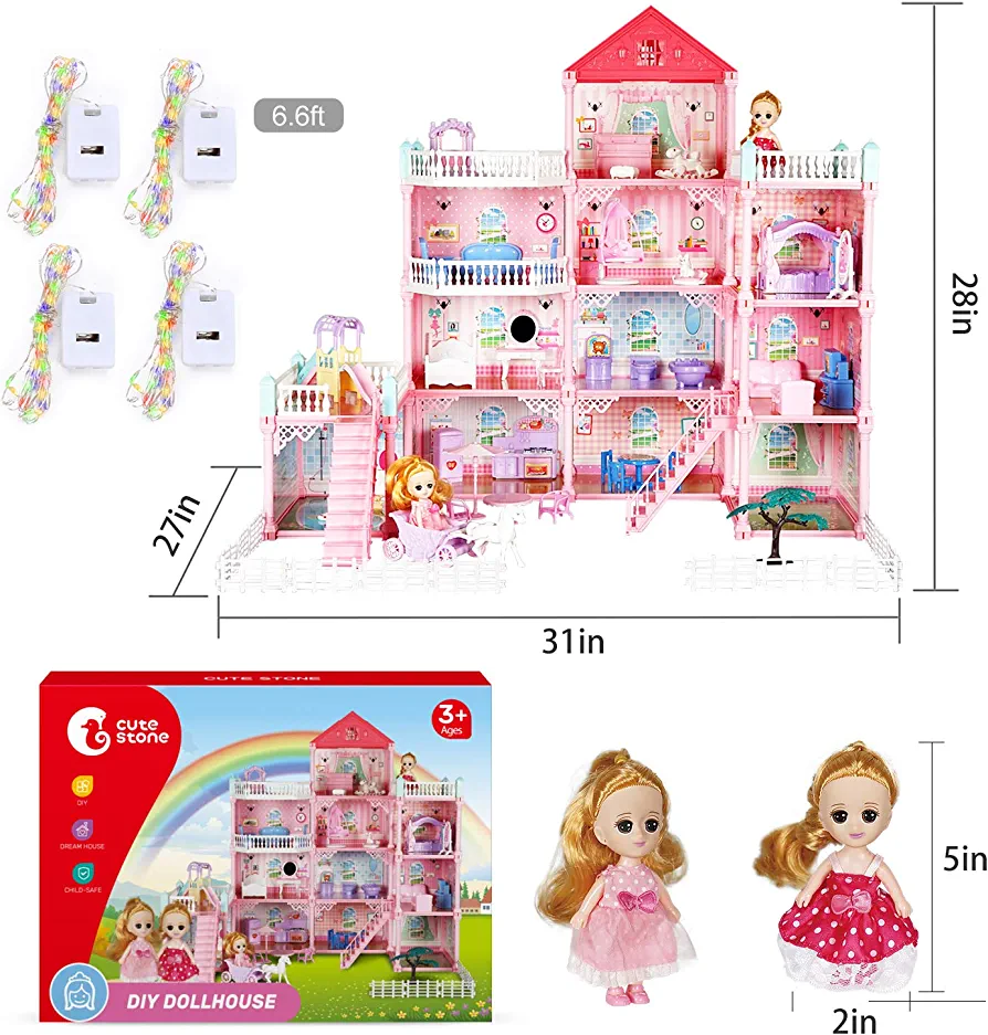 Huge Doll House: With dimensions of 31*28*27 inches, this doll house boasts 11 rooms, including a bedroom, kitchen, dining room, bathroom, living room, study room, piano room, swimming pool, and more.