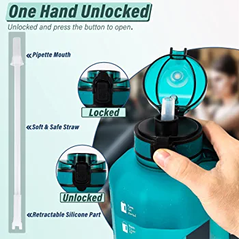 – 1-liter water bottle: This water bottle has a capacity of 1 liter and is free from BPA, ensuring that you can stay hydrated without any harmful chemicals.