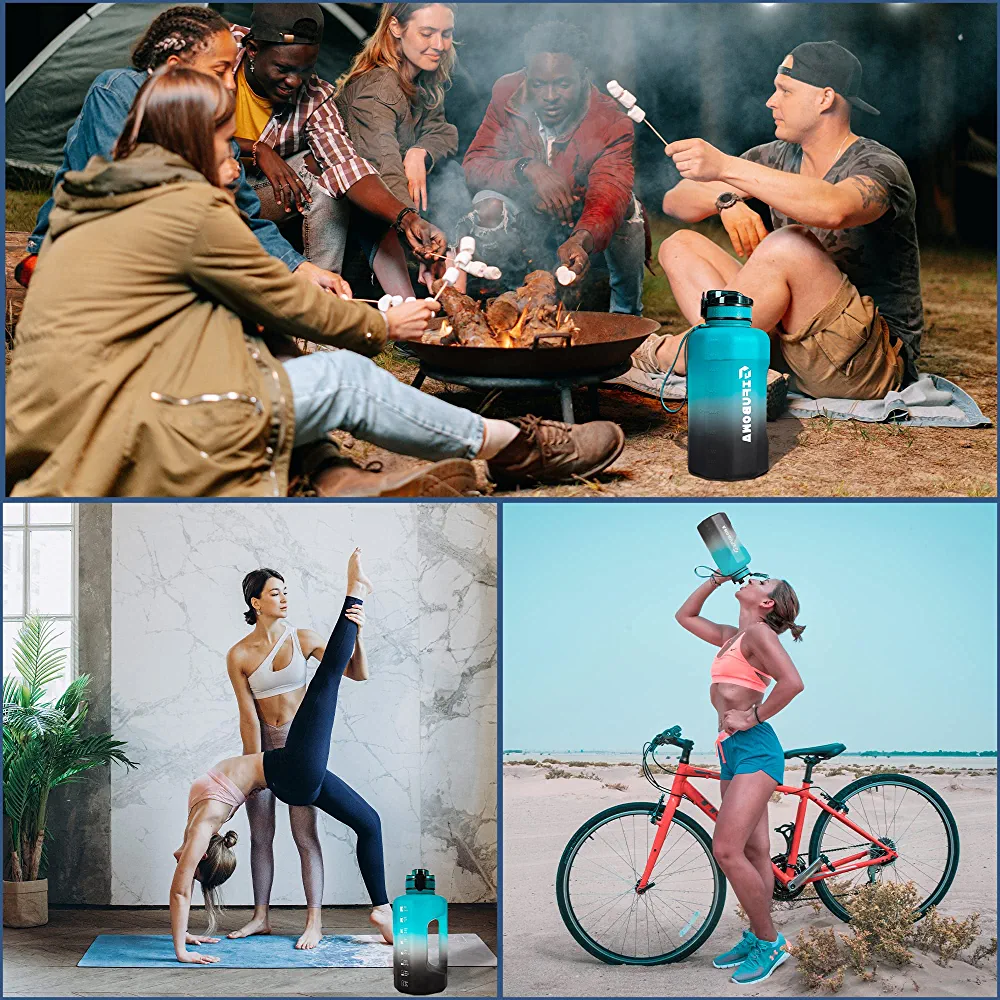 GIFUBOWA Half Gallon Water Bottle with Handle and Straw 74oz Big Sport Water Jug Large Motivational 2.2l Bpa Free Leakproof Bottles for Gym Yoga Camping Outdoor Travel