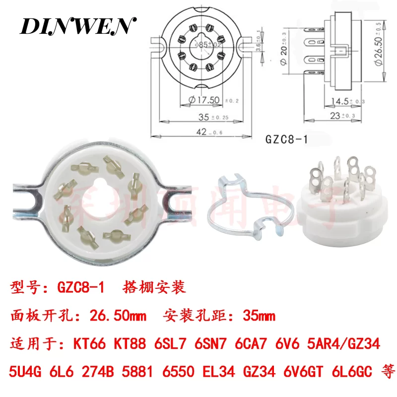 | nameOriginal | Large 8-pin electronic tube socket KT88 6SN7 EL34 6550 274B KT150 6L6 large eight-pin bile socket |