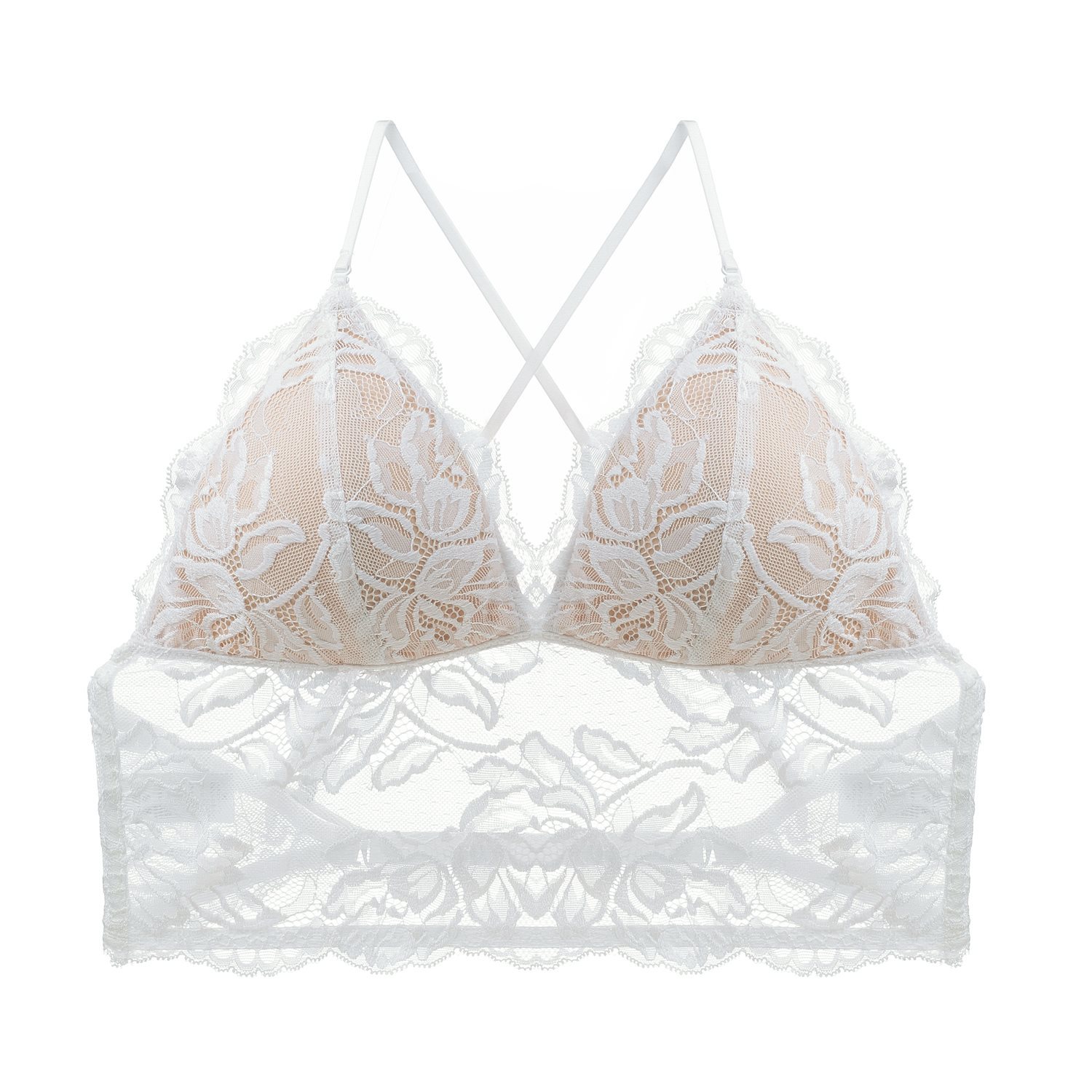 Large Backless Neck-Hanging Underwear Women’s French Style Lace Triangle Cup Beautiful Back Bra White Vest Sling Outer Wear Corset