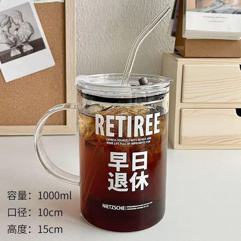 Large capacity 2023 new scale glass drinking cup with lid sippy cup office summer