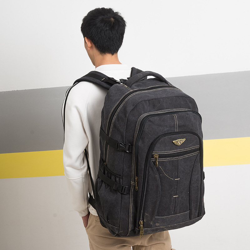 Large Capacity 70 Liters Thickened Canvas Backpack Men's Backpack Vintage Fashion Travel Bag Travel Mountaineering Bag