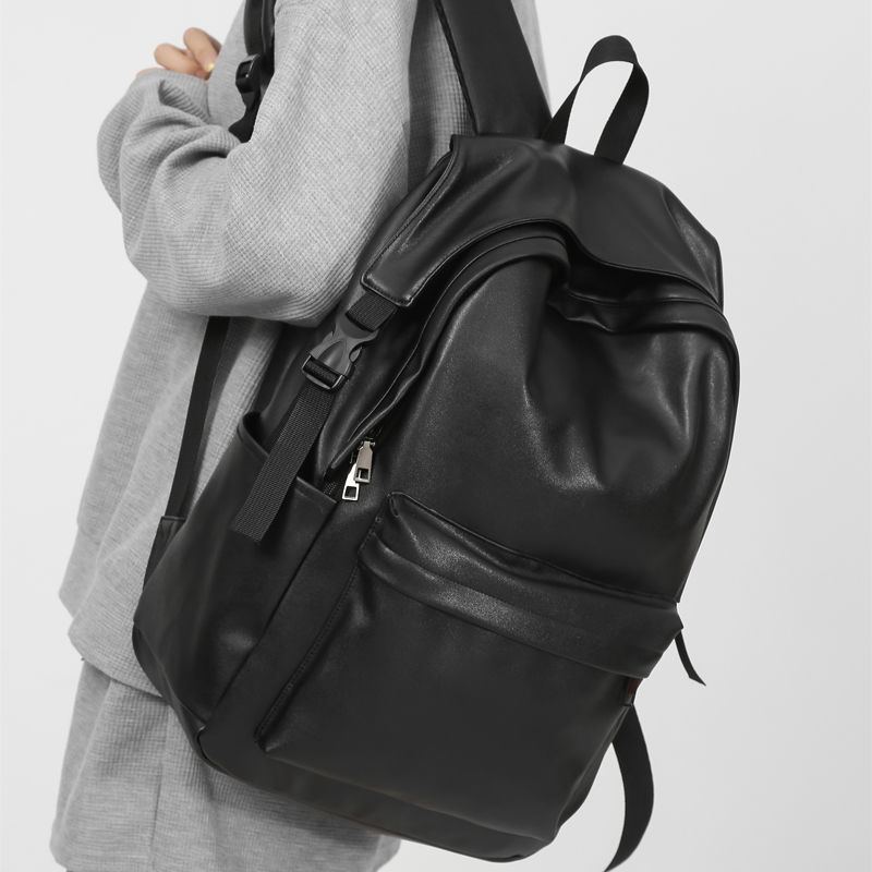 Large capacity backpack men’s pu soft surface sports leisure computer backpack men’s college student high school travel schoolbag New