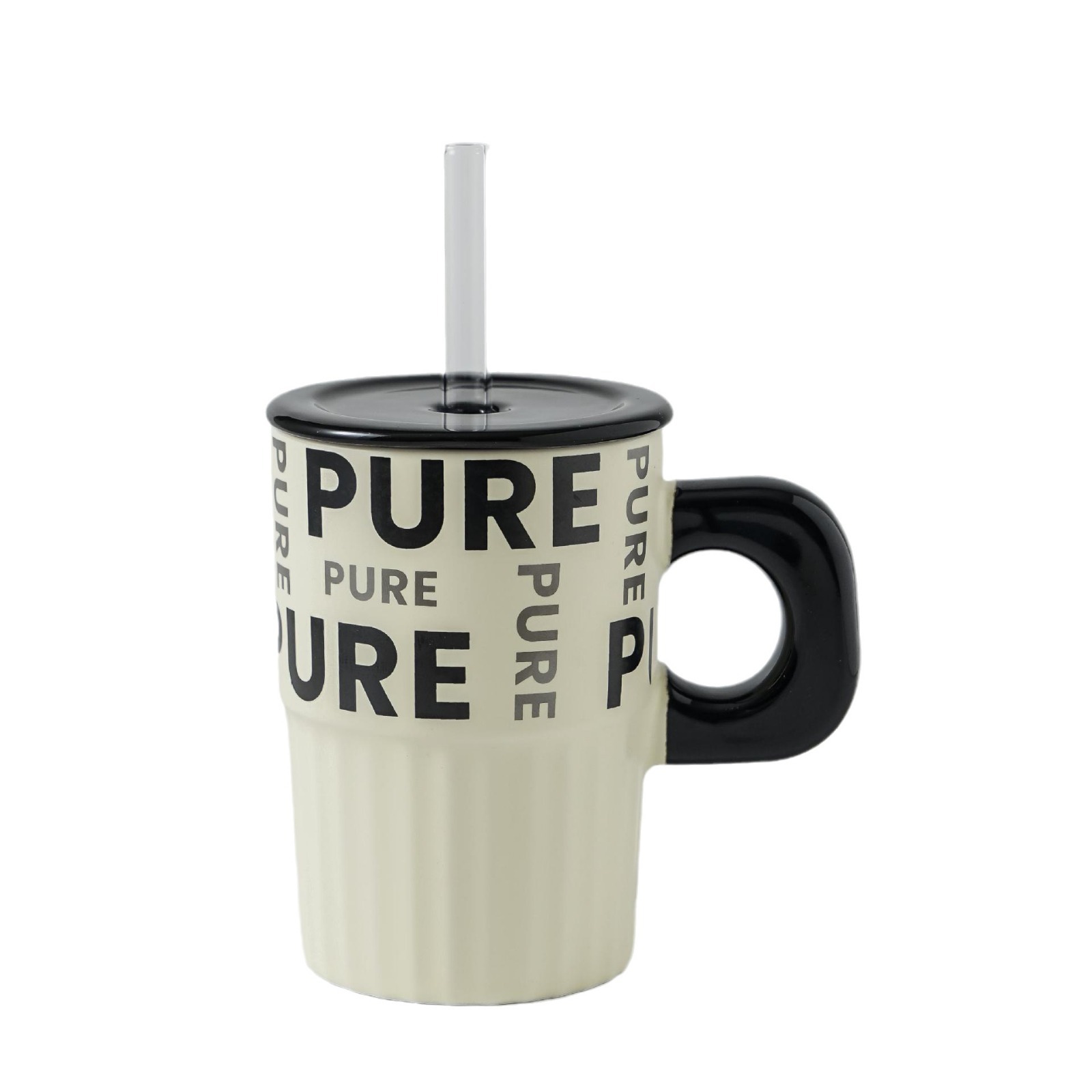 | nameOriginal | Large Capacity contrast color English mug with lid straw high-looking couple drinking cup household creative ceramic cup |