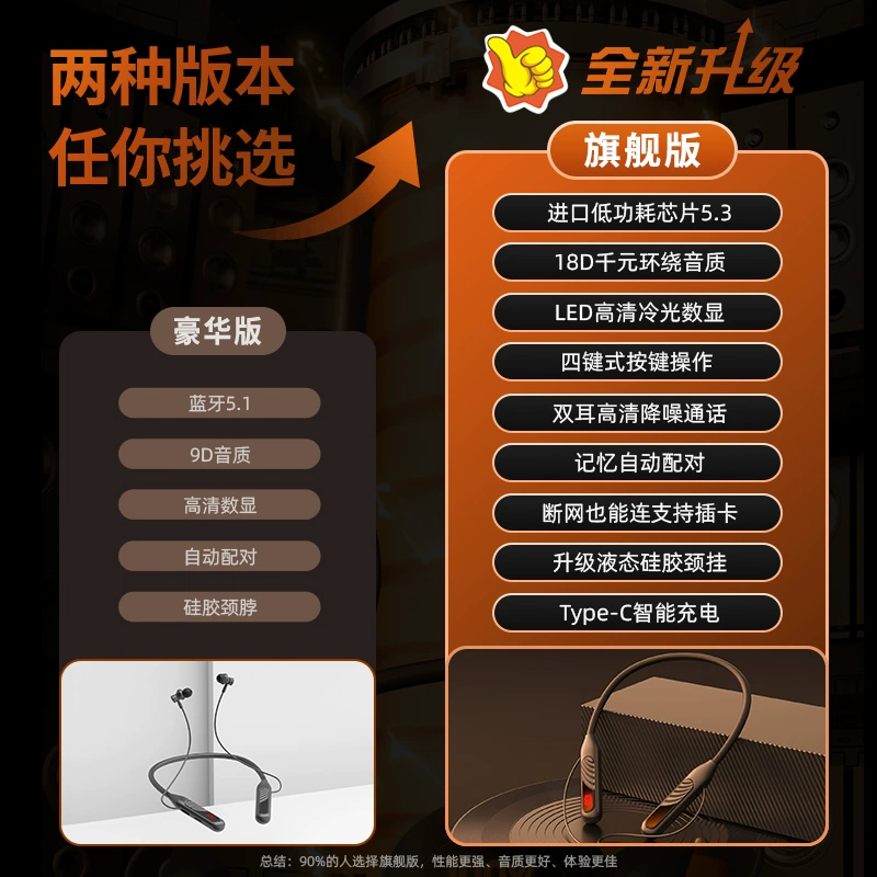 Large -capacity ultra -long battery life new Bluetooth headset wireless high -quality sports running for a long time without pain neck hanging neck