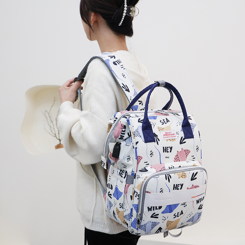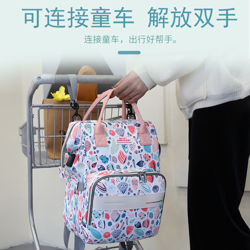 Large Capacity mummy backpack printing fashion maternal and infant bag multi-functional storage maternity bag multi-layer compartment bag