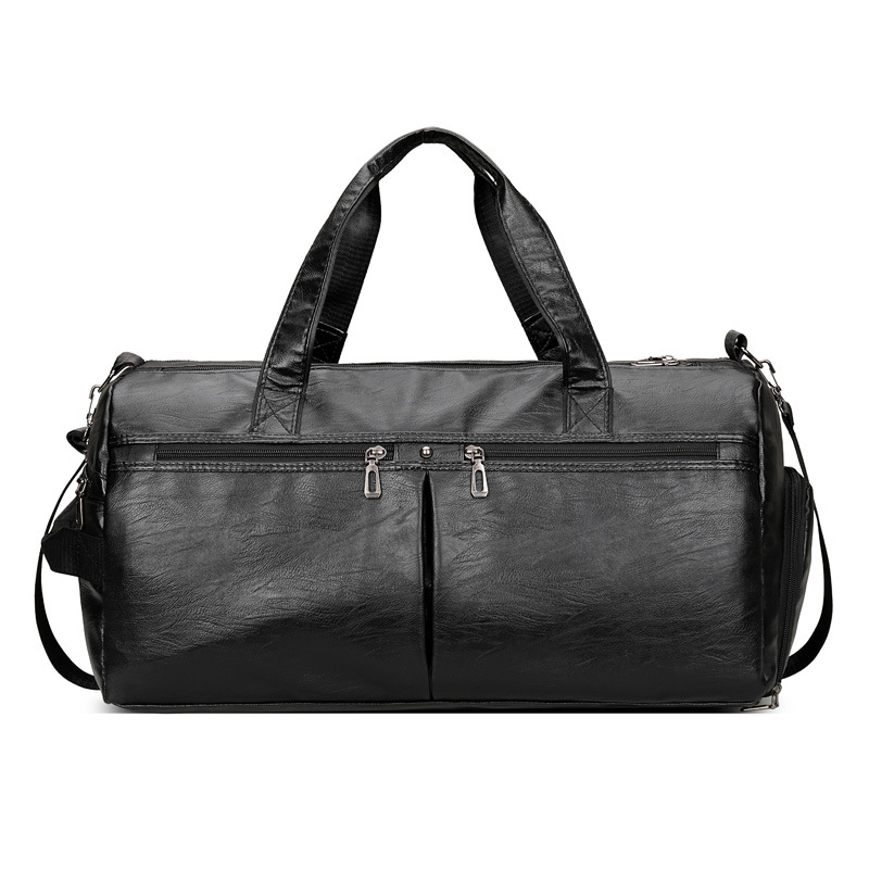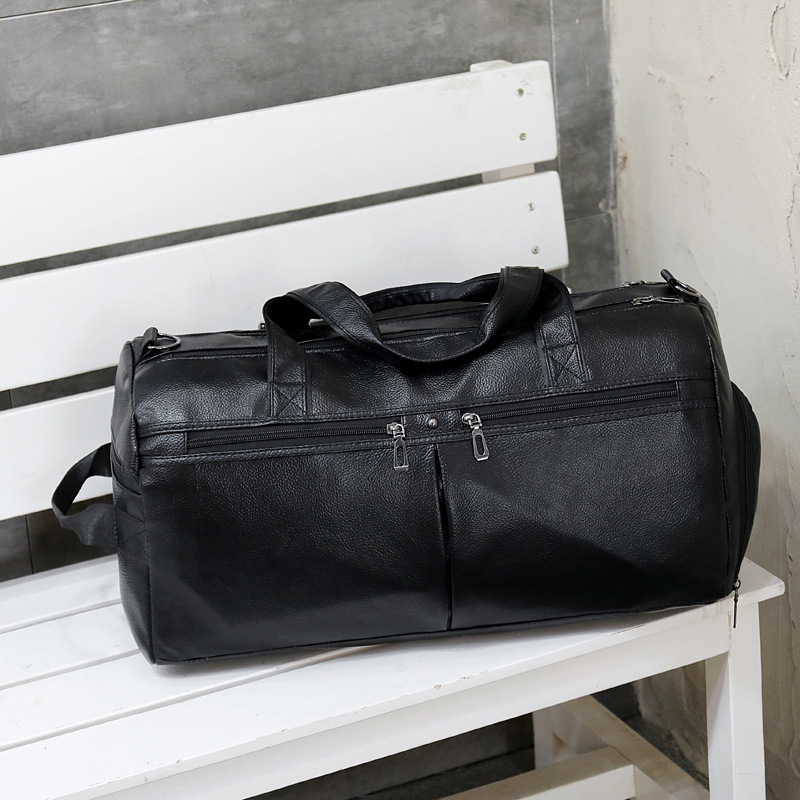 Large Capacity PU Leather Travel Bag Men's Black Hangable Pull Rod Travel Boaring Bag Dry and Wet Separation Fitness Training Bag