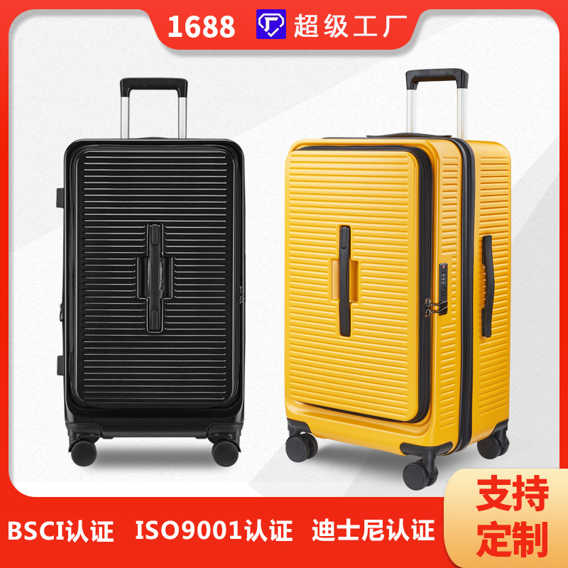 Large-capacity sports version front open lid trolley case telescopic expansion zipper wide body luggage manufacturer customized luggage