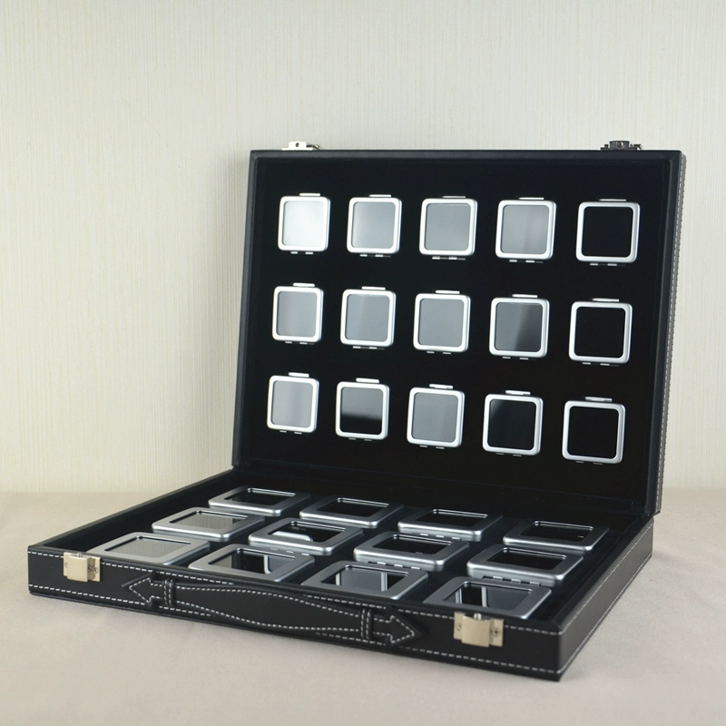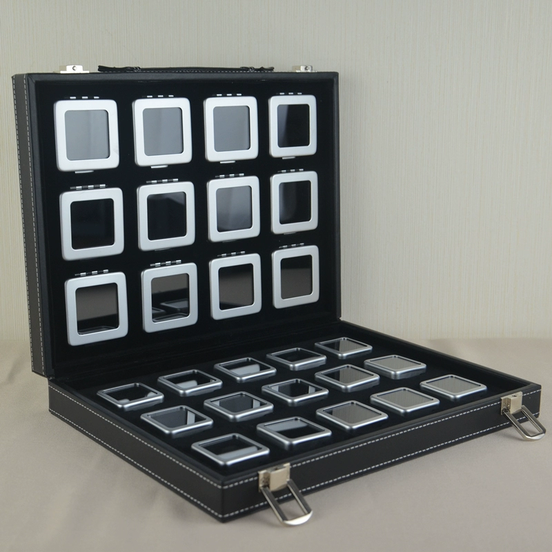 Large -capacity transparent metal nude drill box nude stones color gem storage PU display box portable collection exhibition