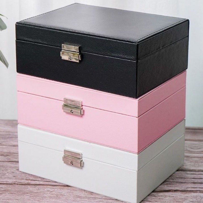 | nameOriginal | Large-capacity two-layer compartment earrings with lock earrings jewelry dustproof jewelry storage box necklace jewelry box double-layer |