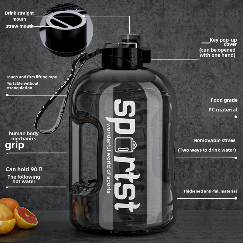 Large capacity water Cup Internet celebrity ton barrel sports fitness male and female students portable plastic space pot big belly water Cup