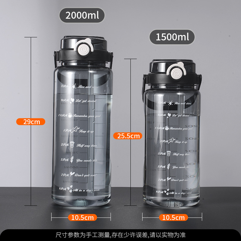 | nameOriginal | Large Capacity Water Cup Men's Anti-fall High Temperature Plastic Sports Kettle Student Portable Straw Summer Scale Cup 2l |