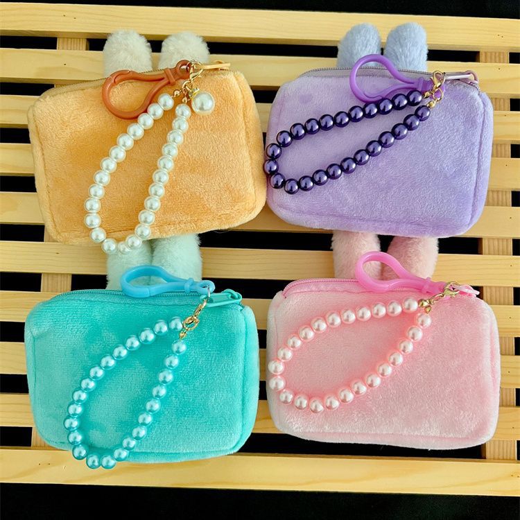 Large Cute Rabbit Square Plush Coin Purse Ins Creative New Hanging Decoration Bank Card Bag Storage Bag