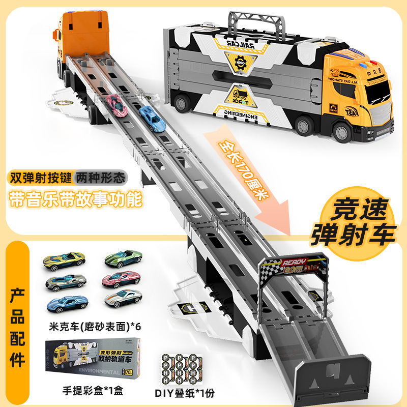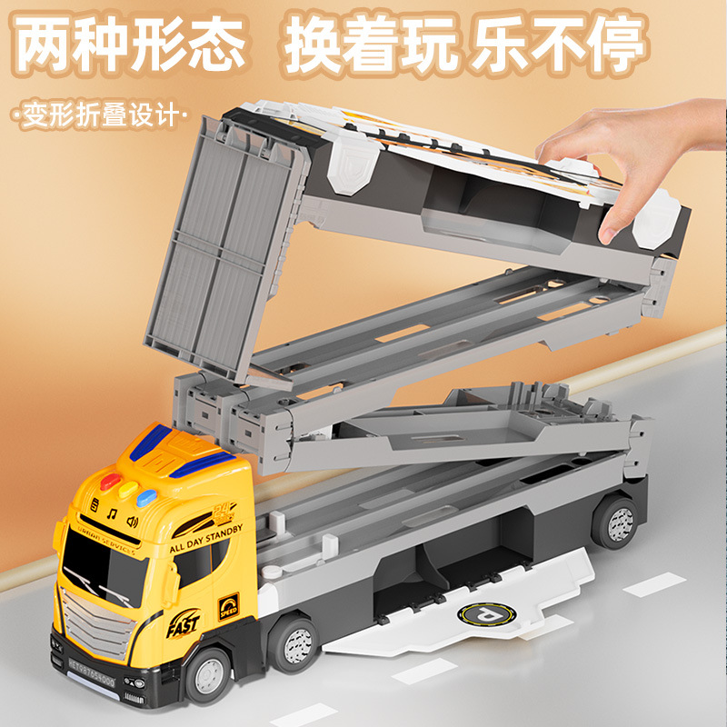 Large Deformed Folding Ejection Railcar Storage Container Car Acousto-optic Car Children's Car Toy suit