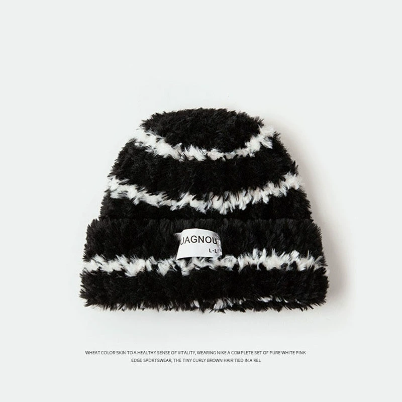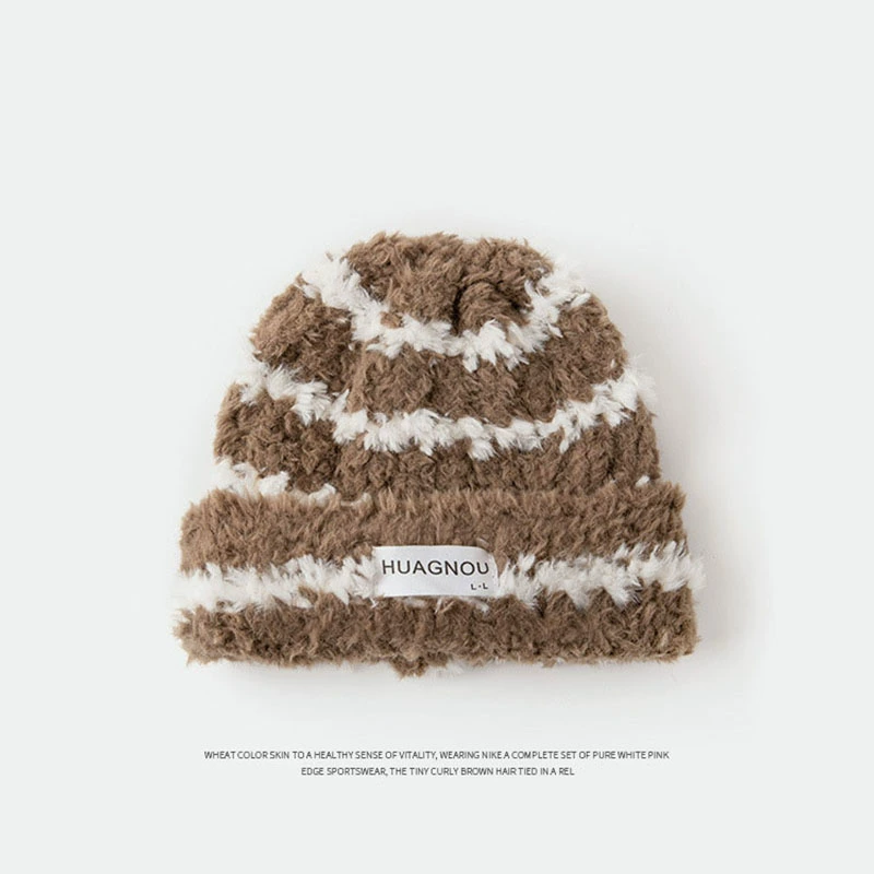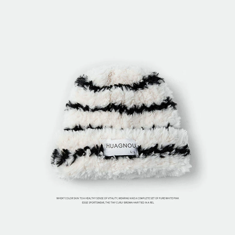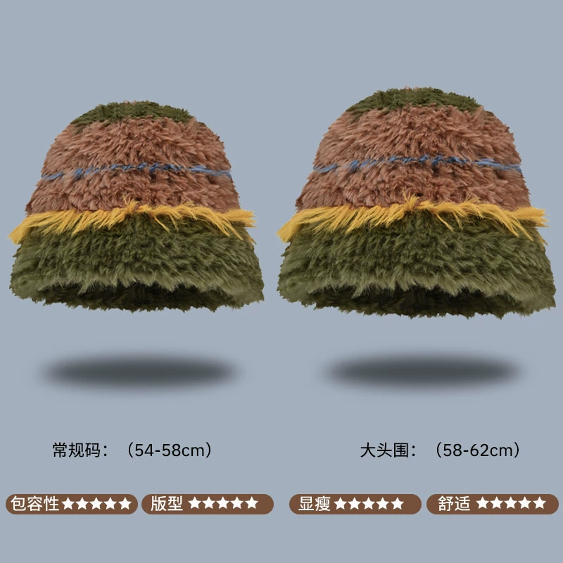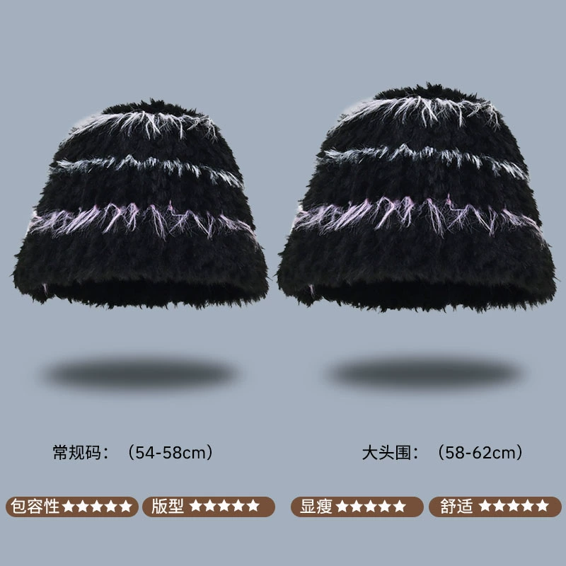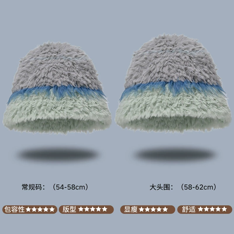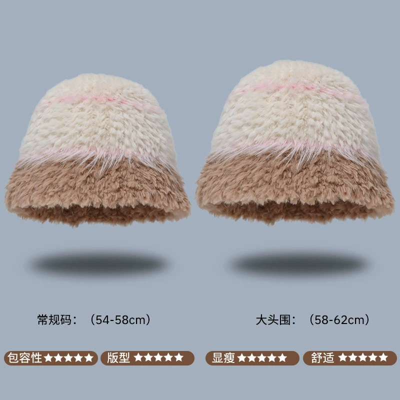 | nameOriginal | Large head circumference plush knitted hat women's autumn and winter cold-proof and warm cold hat color-blocked striped woolen hat showing face small Baotou hat |