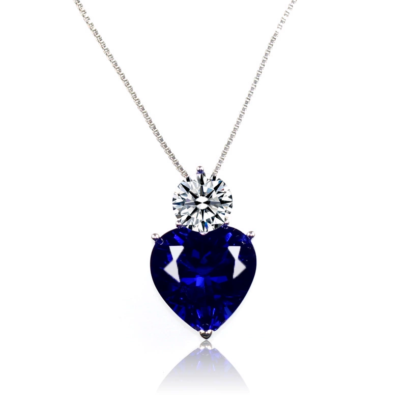 | nameOriginal | Large heart-shaped tanzanite sapphire necklace for women, single dark blue 925 sterling silver love simple accessories pendant |