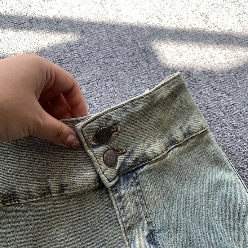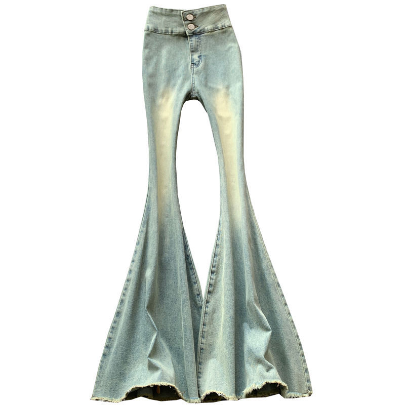 | nameOriginal | Large Horn Jeans Women's Spring and Summer Retro American Style High Waist Slim-fit Stretch Hip-lift Fur Edge Slimming Trousers |
