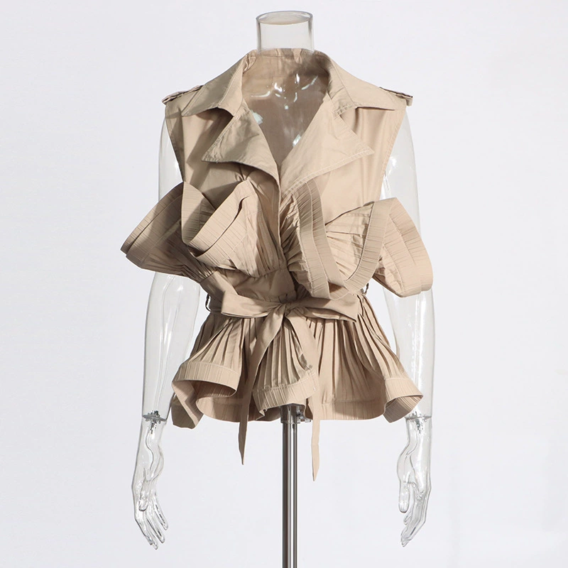 | nameOriginal | Large lapel ruffled lace-up design sleeveless vest |