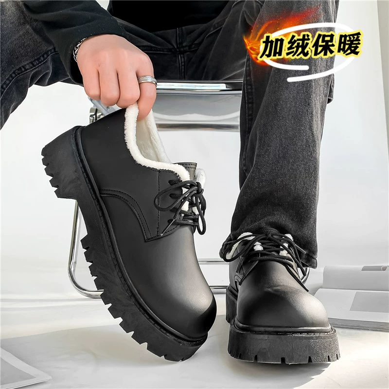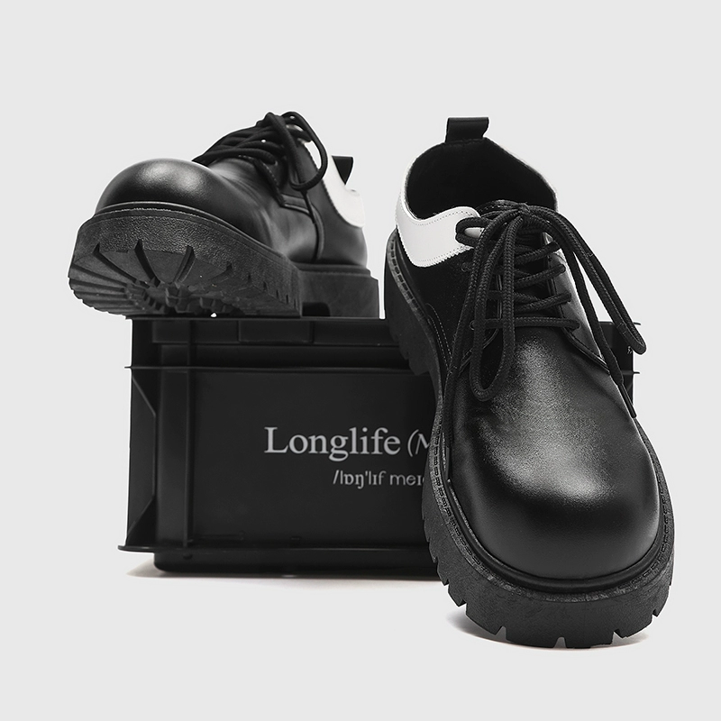 Large leather shoes men’s spring derby shoes men’s low-cut British thick-soled black daily commuting casual round-toe trendy shoes